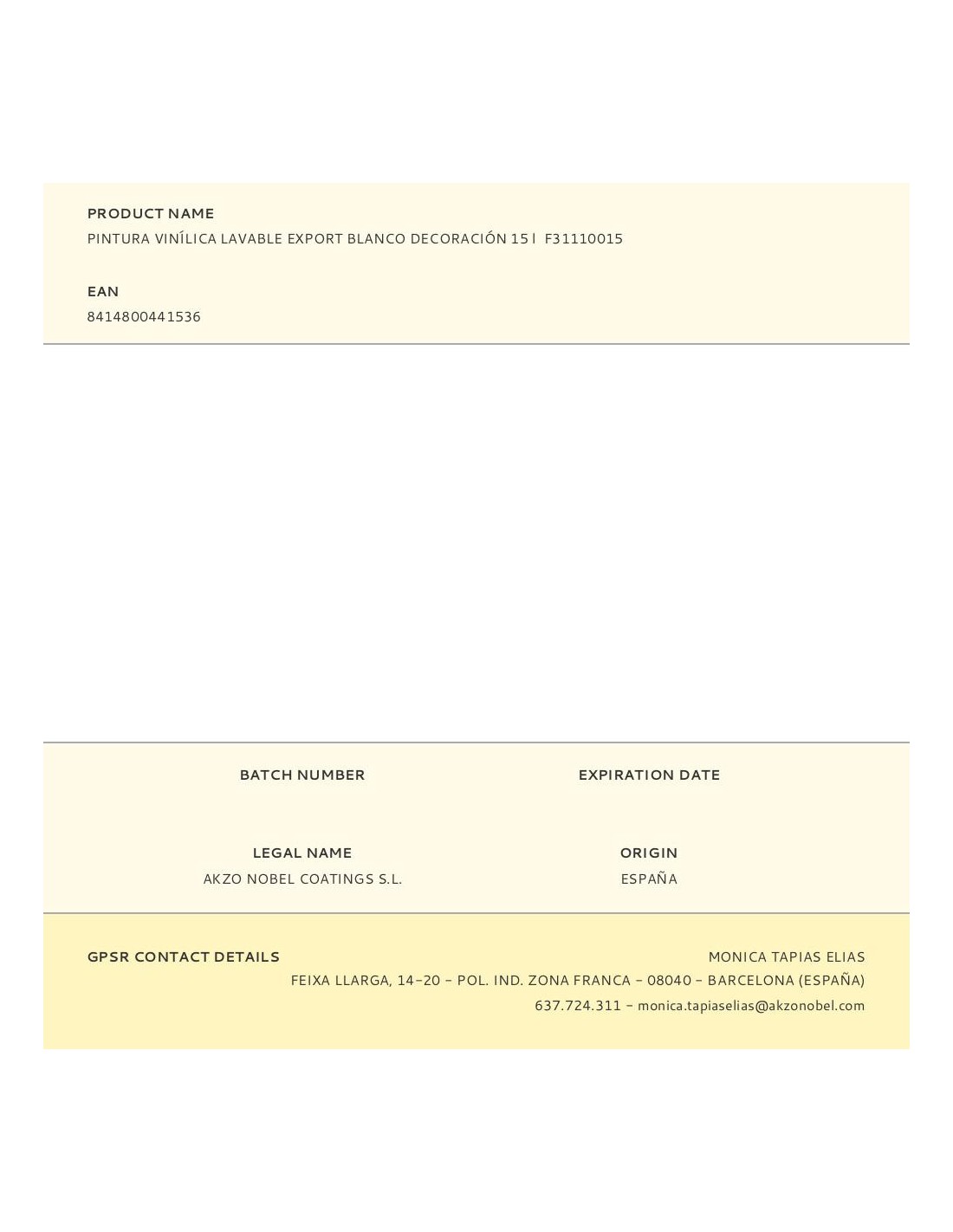 Pintura vinílica lavable export blanco decoración 15 l f31110015 pintura vinílica lavable de alta calidad y gran rendimiento. acabado mate sedoso, blanco inalterable, buen poder cubriente. con conservante antimoho. aplicación fácil y cómoda