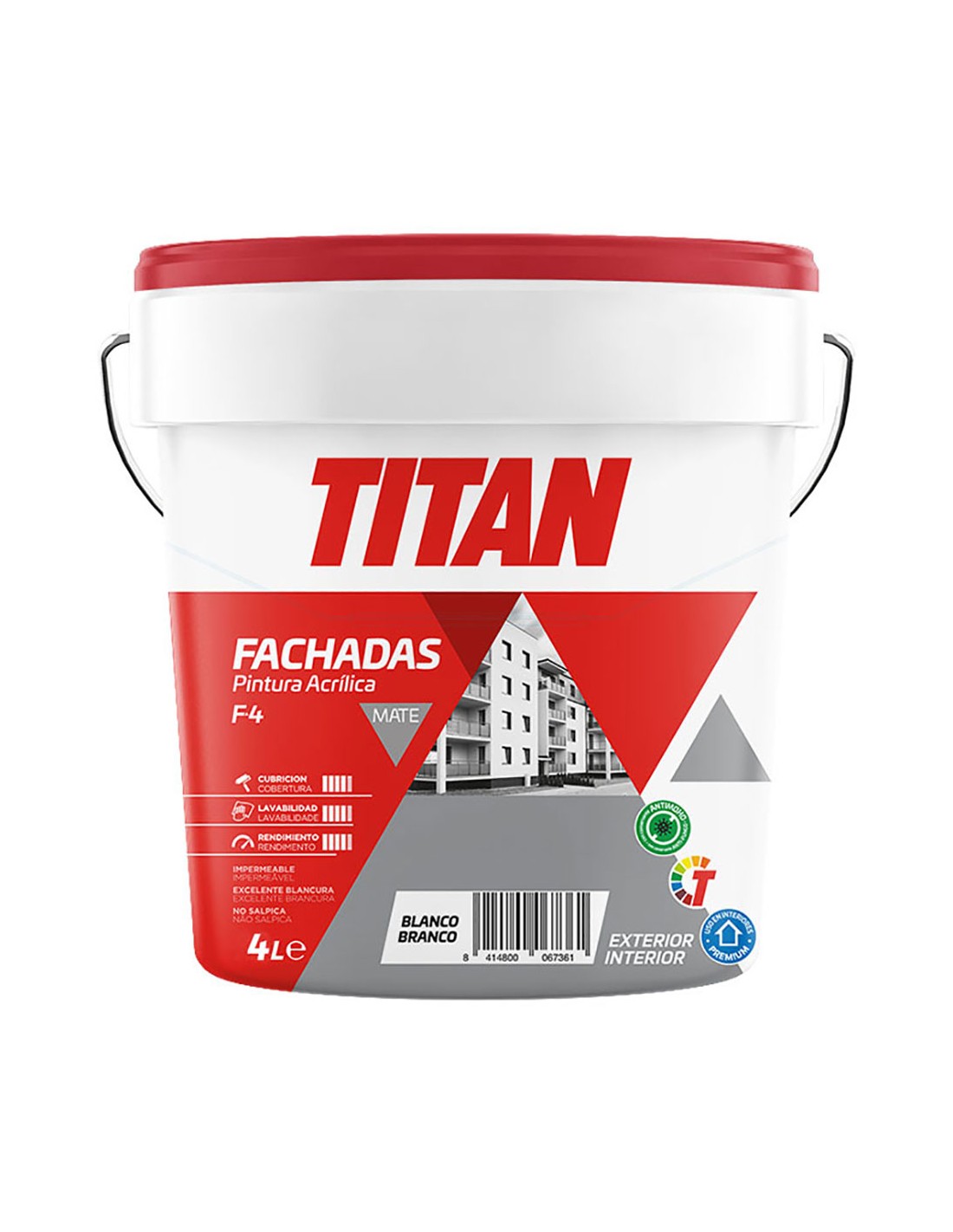 Pintura plástica acrílica estirenada interior/exterior fachadas blanco mate 4 l. para decoración y protección de fachadas y morteros monocapa. blancura inalterable con alto poder cubriente. impermeable, transpirable. buena resistencia a la intemperie. con conservante antimoho