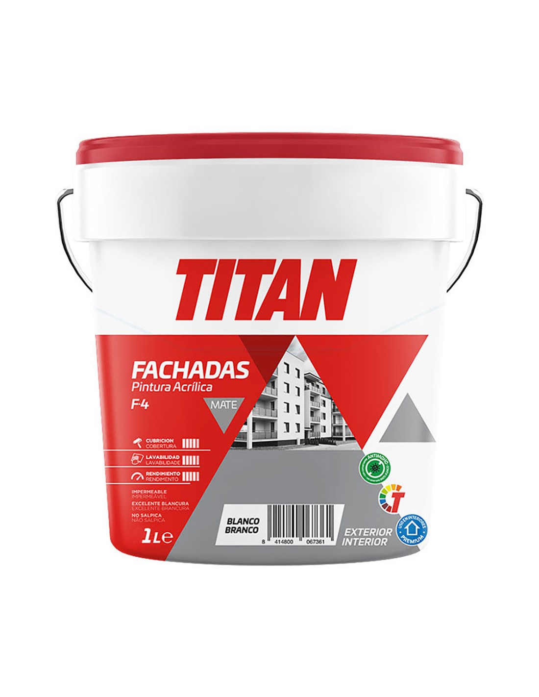 Pintura acrílica blanco mate fachadas 1 l f-4 1l 125670001. para interiores y exteriores para decoración y protección de fachadas y morteros monocapa. blancura inalterable con alto poder cubriente. impermeable, transpirable. buena resistencia a la intemperie. con conservante antimoho