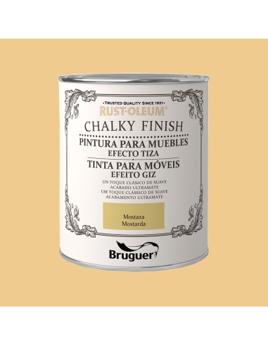 Rust-oleum chalky finish muebles mostaza 750 ml. pintura al agua efecto tiza, se puede aplicar en todo tipo de superficies como madera, metal, piedra, arcilla, yeso o incluso plástico, con un excelente resultado. te permite customizar desde un jarrón antiguo, una lámpara, un cesto de playa o incluso unos cojines, ya que se puede aplicar también sobre tela.