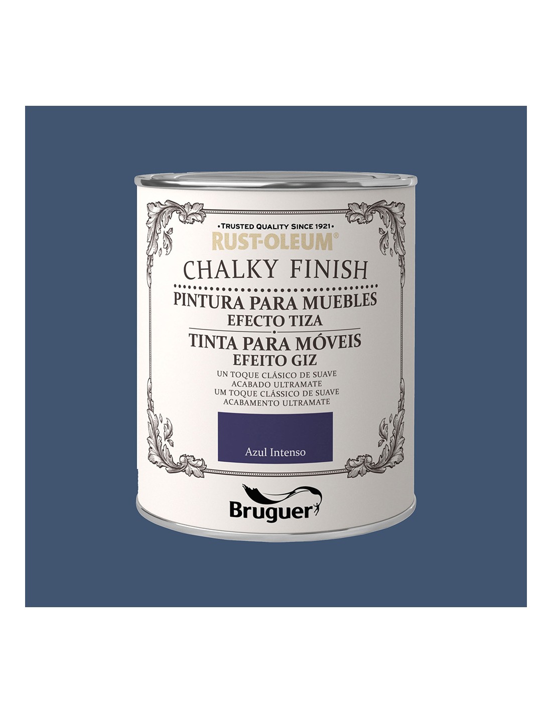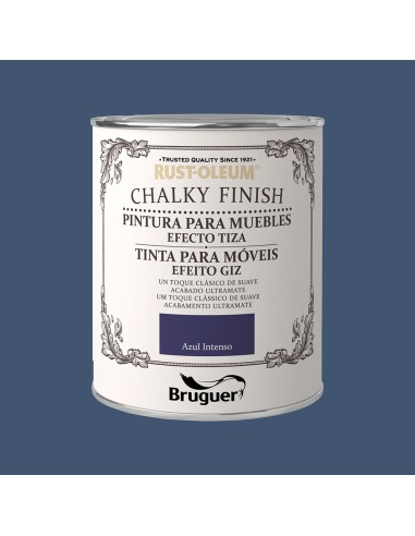 Rust-oleum chalky finish muebles azul intenso 750 ml. pintura al agua efecto tiza, se puede aplicar en todo tipo de superficies como madera, metal, piedra, arcilla, yeso o incluso plástico, con un excelente resultado. te permite customizar desde un jarrón antiguo, una lámpara, un cesto de playa o incluso unos cojines, ya que se puede aplicar también sobre tela.
