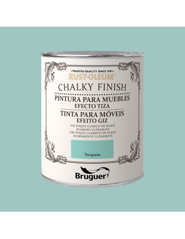 Rust-oleum chalky finish muebles turquesa 750 ml. pintura al agua efecto tiza, se puede aplicar en todo tipo de superficies como madera, metal, piedra, arcilla, yeso o incluso plástico, con un excelente resultado. te permite customizar desde un jarrón antiguo, una lámpara, un cesto de playa o incluso unos cojines, ya que se puede aplicar también sobre tela