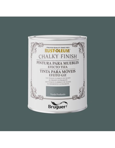 Rust-oleum chalky finish muebles verde profundo 750 ml. pintura al agua efecto tiza, se puede aplicar en todo tipo de superficies como madera, metal, piedra, arcilla, yeso o incluso plástico, con un excelente resultado. te permite customizar desde un jarrón antiguo, una lámpara, un cesto de playa o incluso unos cojines, ya que se puede aplicar también sobre tela.