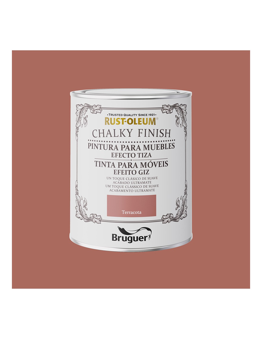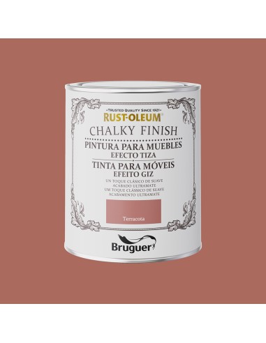 Rust-oleum chalky finish muebles terracota 750 ml. pintura al agua efecto tiza, se puede aplicar en todo tipo de superficies como madera, metal, piedra, arcilla, yeso o incluso plástico, con un excelente resultado. te permite customizar desde un jarrón antiguo, una lámpara, un cesto de playa o incluso unos cojines, ya que se puede aplicar también sobre tela