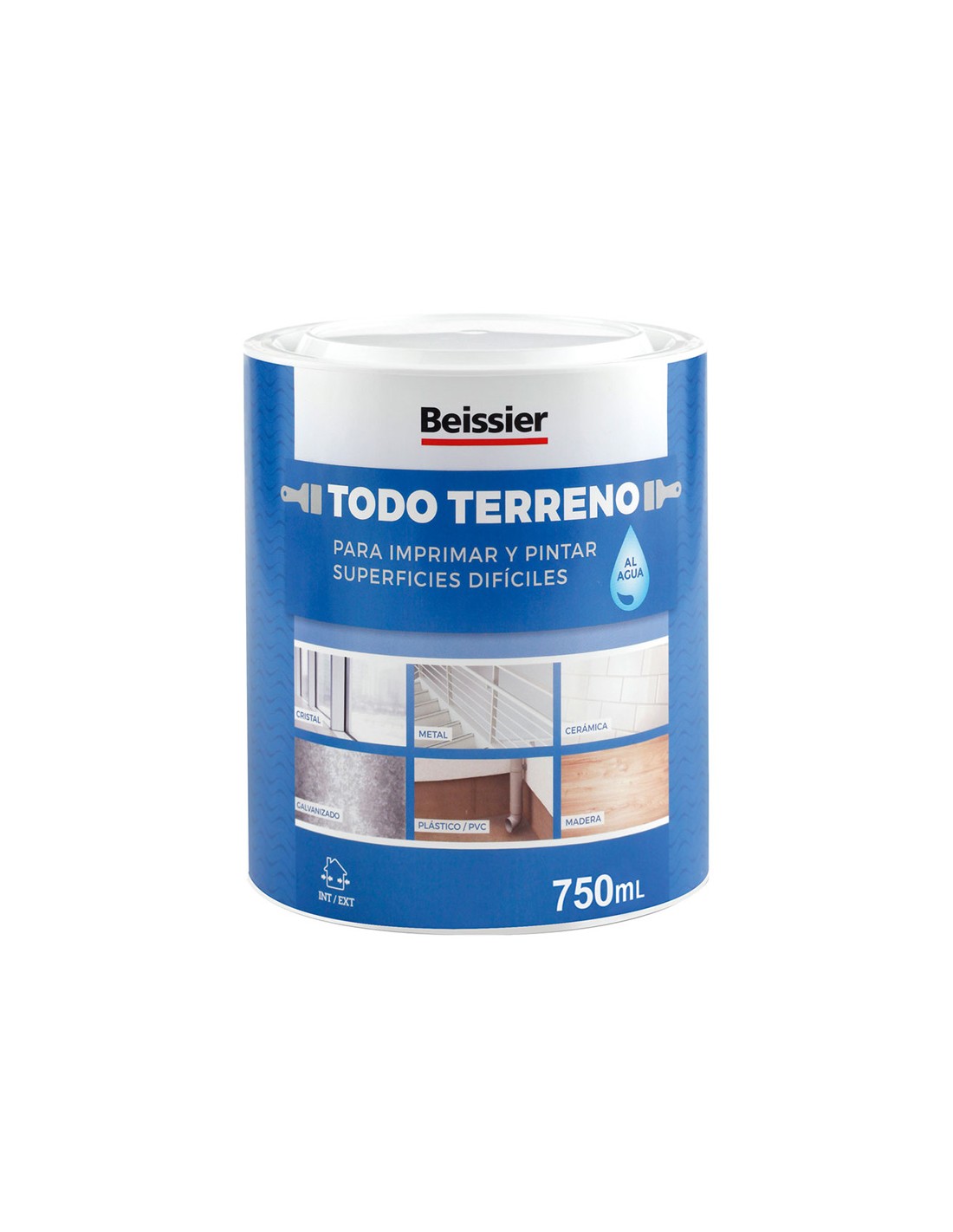 Preparación todo terreno al agua blanco 750 ml. pintura para imprimar y pintar superficies dificiles con un solo producto. secado rápido. excelente adherencia. resistencia hasta 100°c. pintura de fondo y acabado que actúa como puente de adherencia y/o preparación sobre todo tipo de superficies. anticorrosivo sobre metal. permite posterior esmaltado y barnizado. dilución al agua. coloreable con colorante universal.