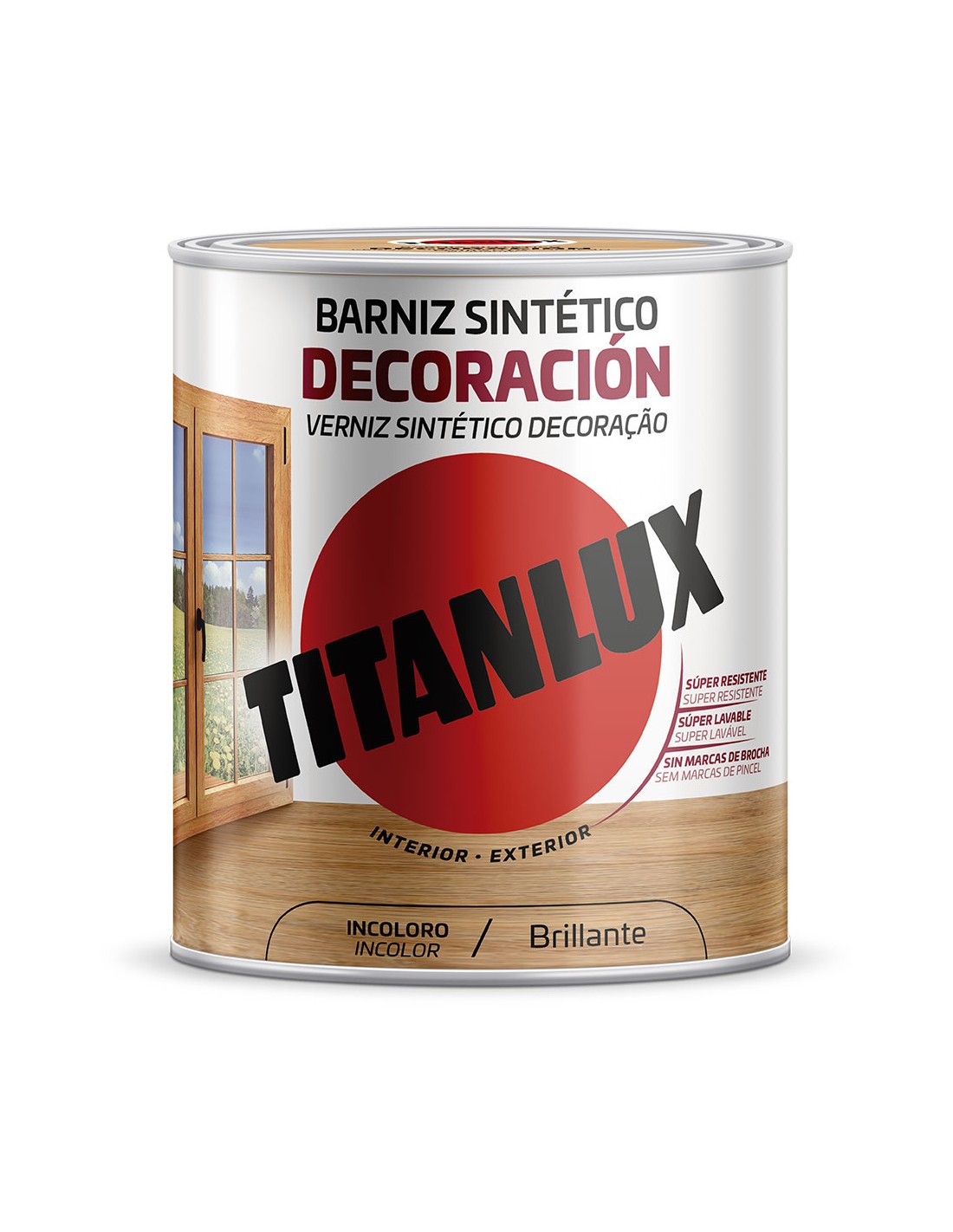 Barniz sintético decoración brillante incoloro 4 l. barniz alquídico de alto brillo y elevada dureza, basado en tecnología de altos sólidos, de secado rápido y excepcional transparencia. no altera las tonalidades y contrastes del veteado de la madera. de gran elasticidad, resistencia al rayado y los lavados.