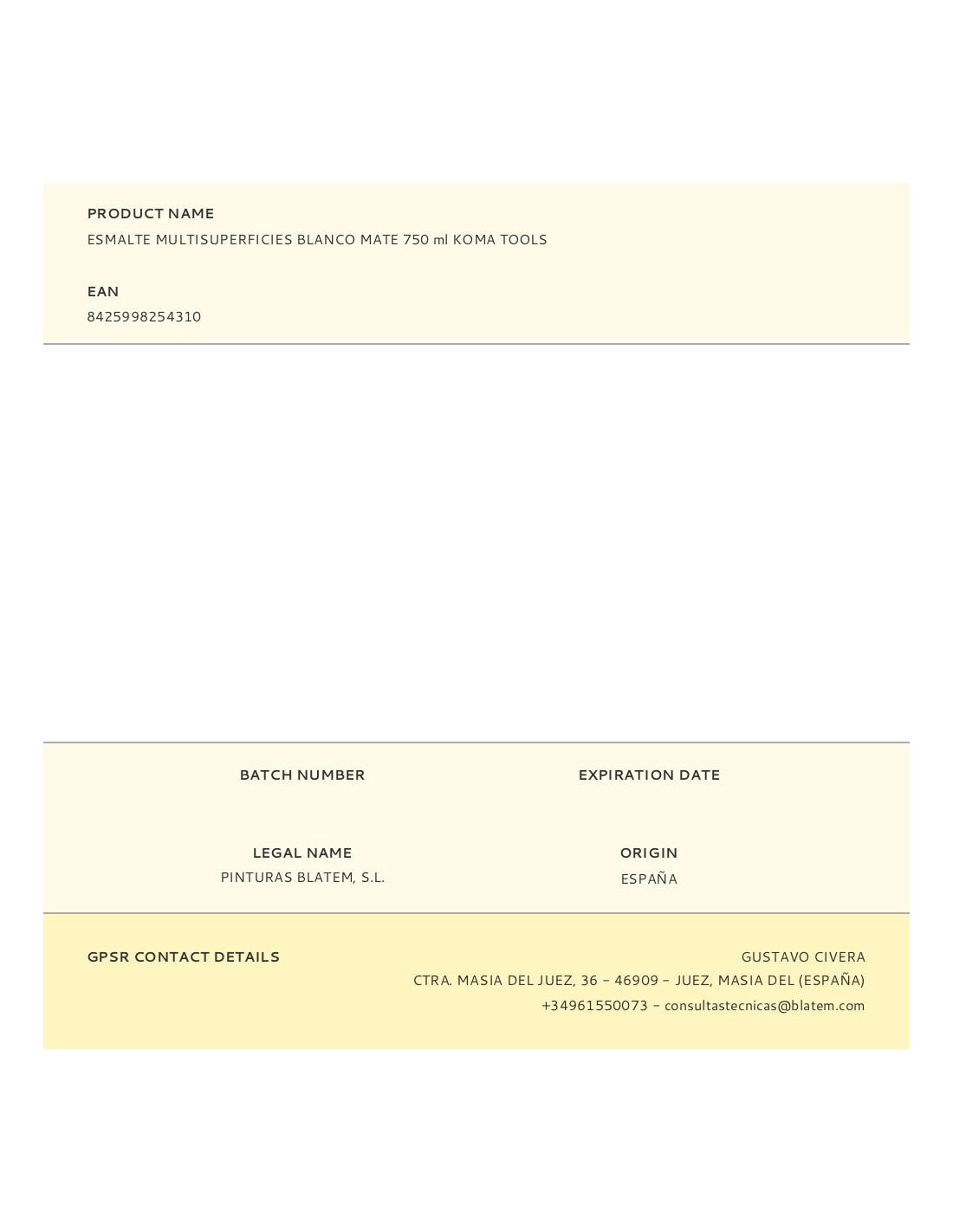 Esmalte al agua para la renovación y decoración de diversos tipos de superficie en interior y exterior(yeso, pvc, melamina, aluminio, madera, hierro, galvanizado, cobre). labable. secado en 30-60min. repintado de 6-8h. rendimiento total 8-10 m. aplicación válido con todo tipo de brochas y rodillos, tambien aplicable con pistola