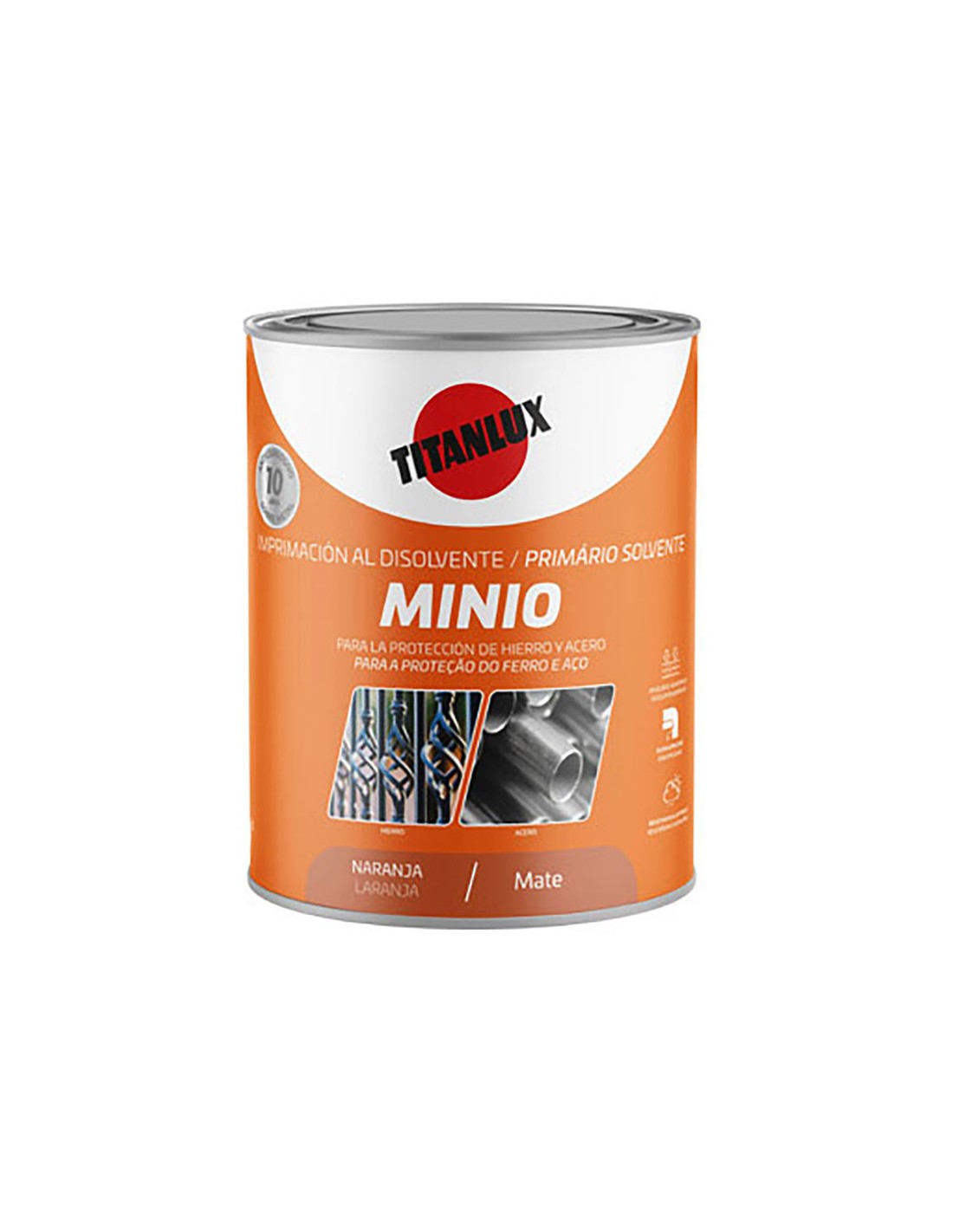 Imprimación sintética antioxidante minio naranja mate 750 ml. excelente adherencia, opacidad y resistencia a la intemperie. protección antioxidante del hierro en: mobiliario industrial, maquinaria, electrodomésticos, cajas eléctricas, etc. tiempo de secado 3 - 4 h, repintado 6 h