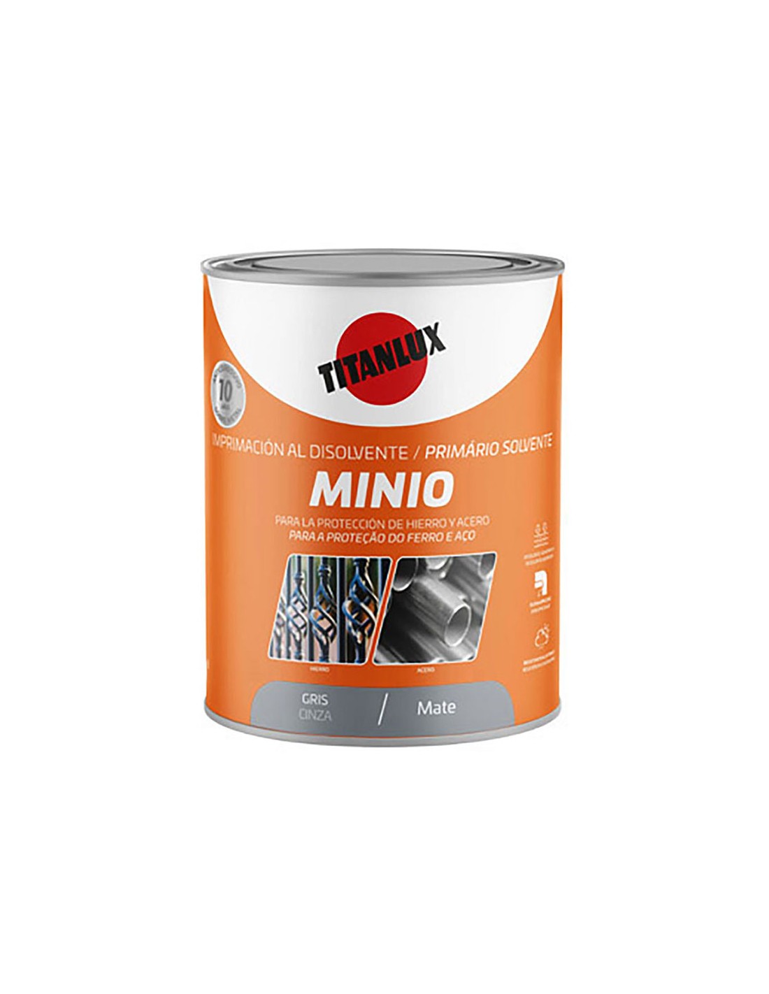 Imprimación sintética antioxidante minio gris mate 750 ml. excelente adherencia, opacidad y resistencia a la intemperie. protección antioxidante del hierro en: mobiliario industrial, maquinaria, electrodomésticos, cajas eléctricas, etc. tiempo de secado 3 - 4 horas, repintado 6 horas