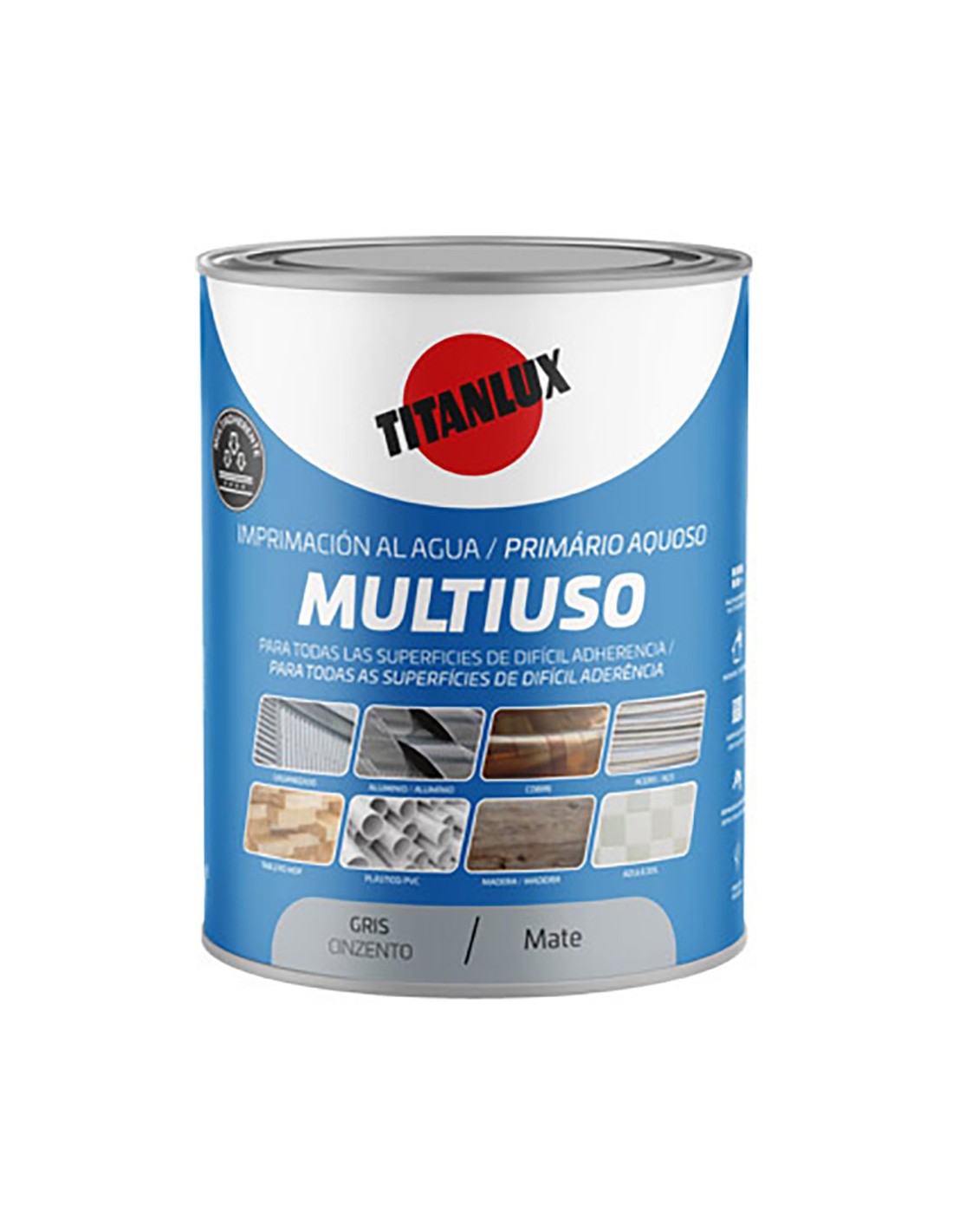 Imprimación anticorrosiva al agua, gris mate, 750 ml, de secado rápido para todo tipo de superficies. adherencia sobre un gran número de soportes sin pintar o pintados con diferentes recubrimientos. protección contra el óxido en superficies de acero. imprimación adherente para: galvanizado, aluminio, acero, etc. sellador para madera y mdf, permite obtener acabados tipo laca. sellador de manchas localizadas sobre paredes y techos en interiores. efectivo para manchas de rotuladores, lápices, café, etc. en zonas con humedad se recomienda aplicar, directamente, dos capas de esmalte azulejos agua. secado 1 - 2 h, repintado 6 - 12 h