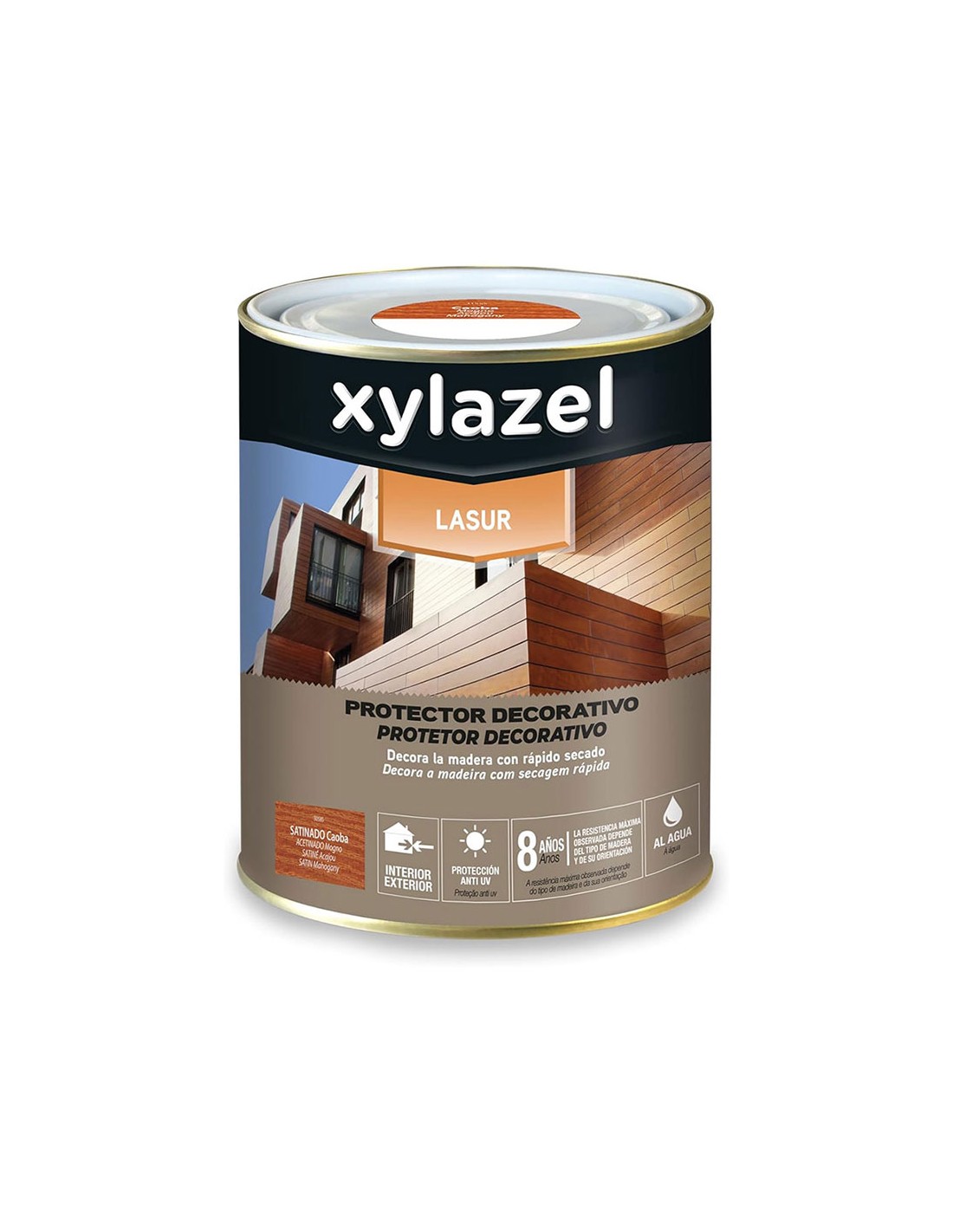 Protector decorativo satinado caoba 750 ml al agua. es un lasur de dispersión acuosa de copolímero acrílico para proteger la madera del agua y a la intemperie y protector hidrofugante, para el cuidado de muebles y maderas en exterior. no recomendado para superficies que vayan a estar sometidas a grandes esfuerzos de abrasión, para exterior