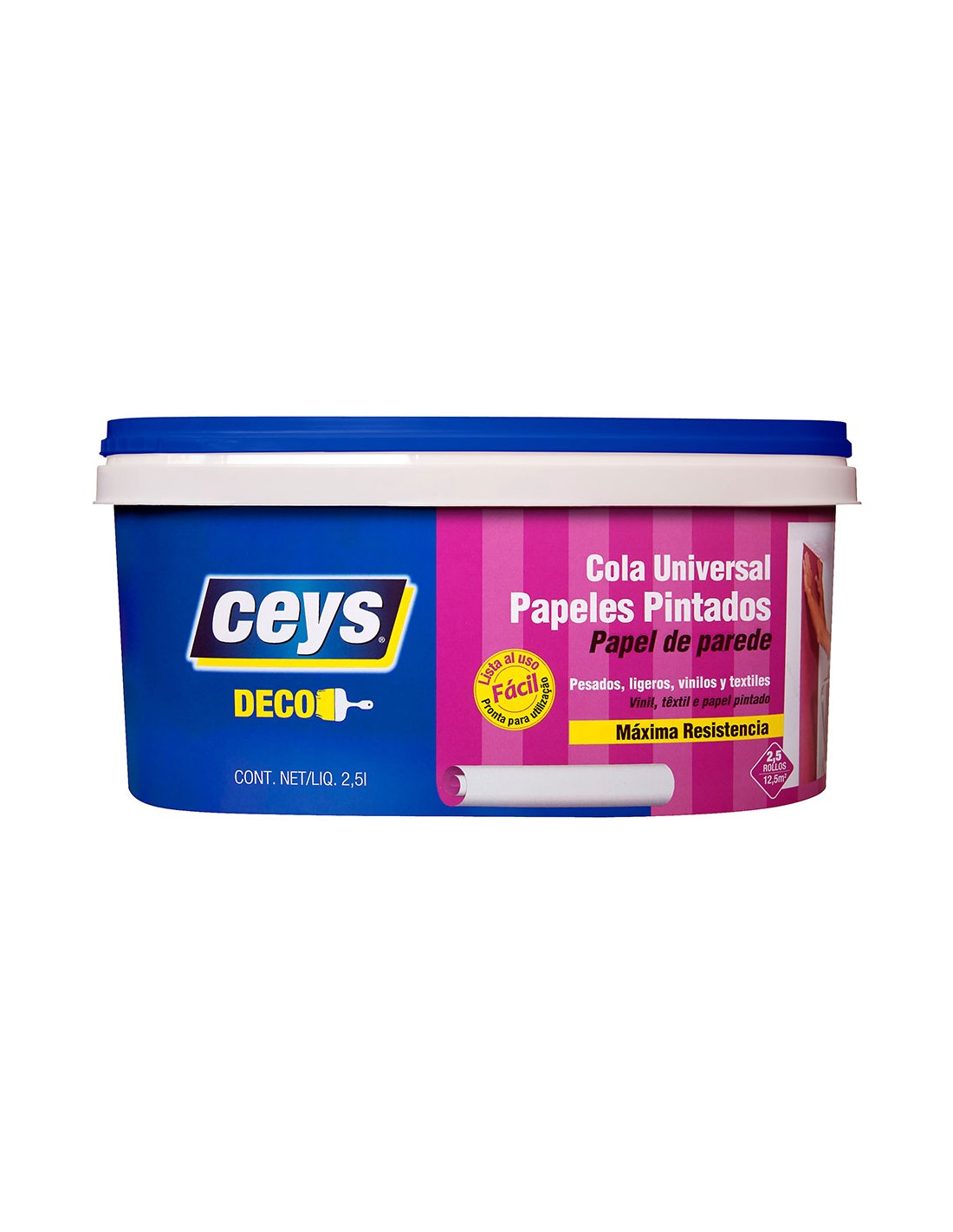Cola universal transparente especial para todo tipo de papeles (vinilos, textiles y papeles pintados), aplicable en todo tipo de superficies: hormigón, ladrillo, yeso, madera y pladur, cobertura aprox. 2,5 rollos / 12 m, no huele, sin grumos, resistente a la humedad, 2,5 l