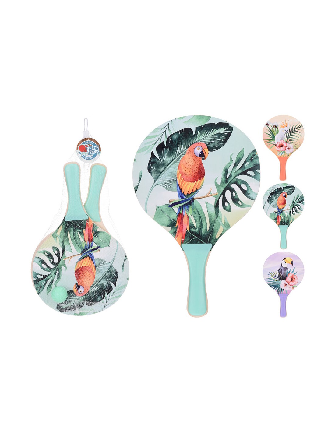 Set de palas y pelota de playa. (palas de madera, colores surtidos) colores / modelos surtidos