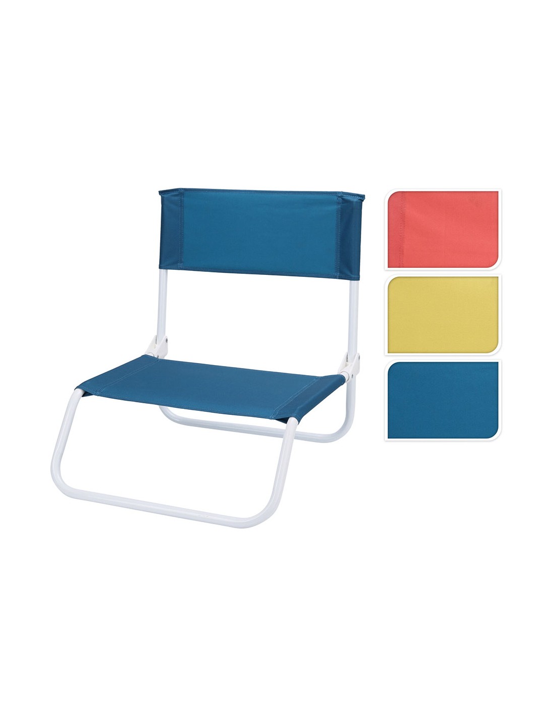 Silla de playa metalica plegable. medidas: 45x50x45cm (ancho/fondo/alto) peso: 1,80kg colores surtidos
