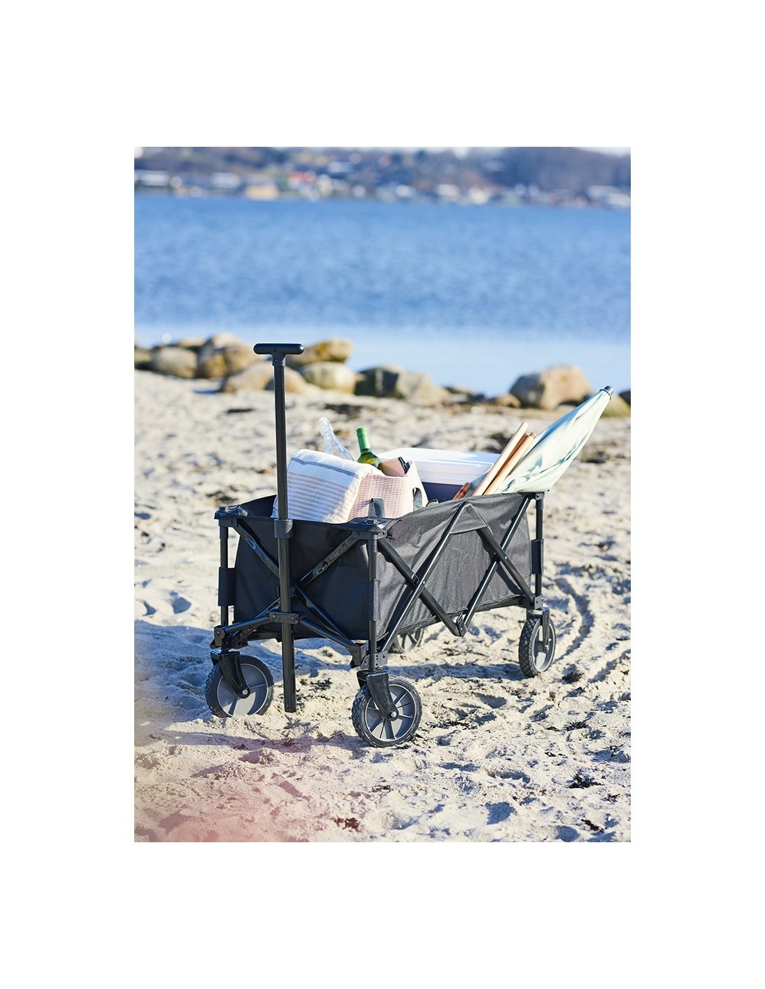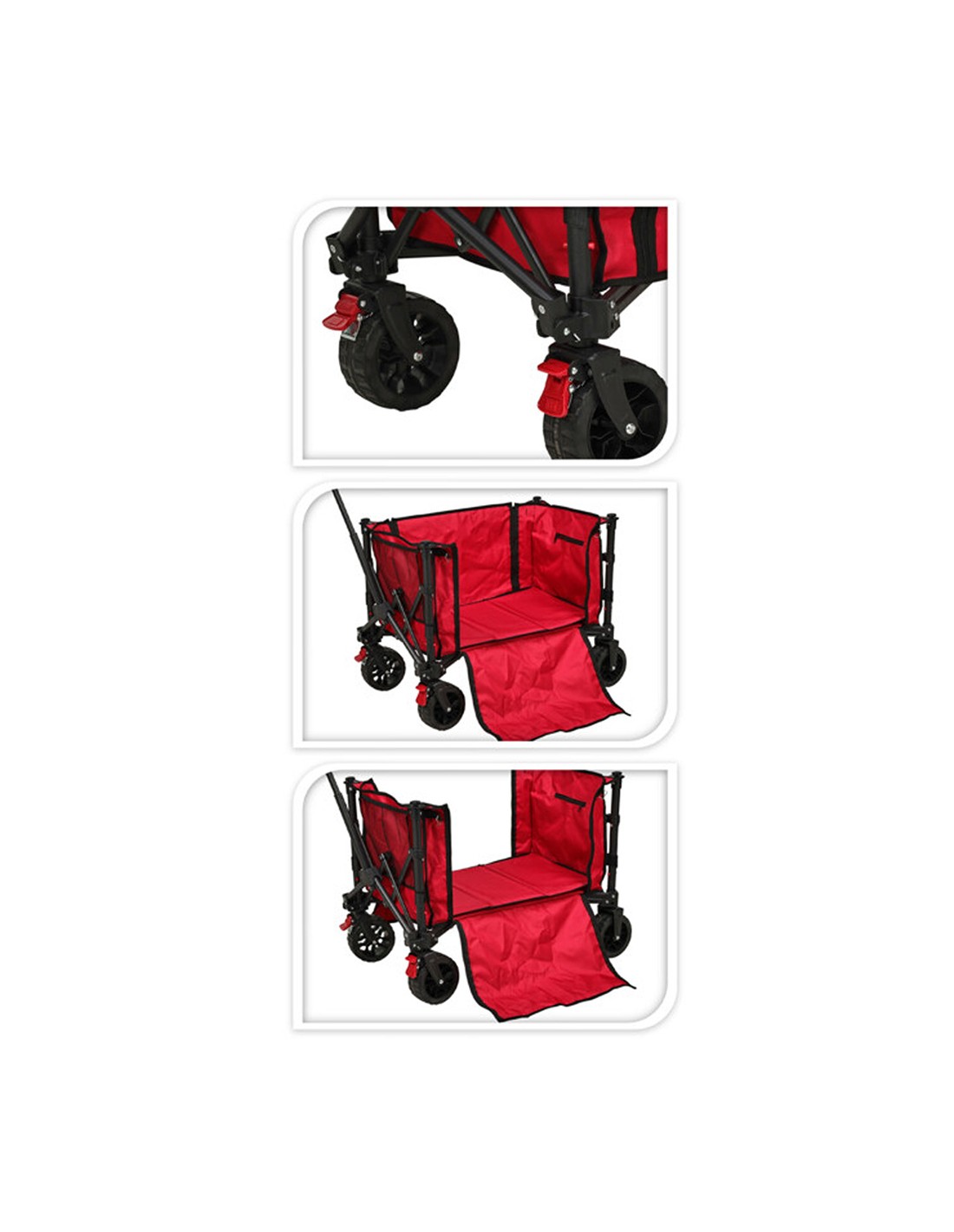 Carro de playa plegable. medidas: 91 x 47 x 52 cm. peso maximo de transporte: 70 kg. color rojo. estructura metalica