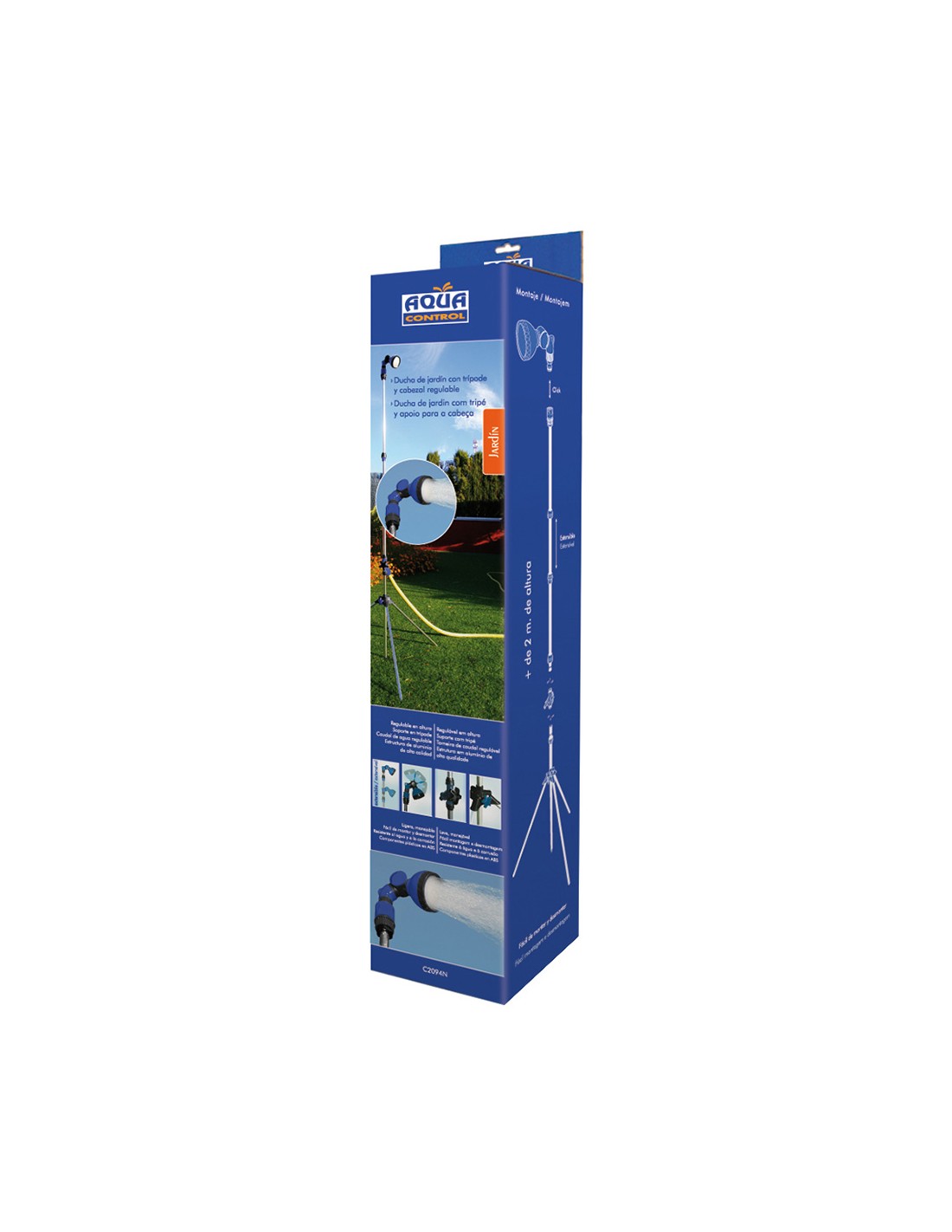 Ducha de jardin con tripode blue bird. ligera, manejable y fácil de montar. estructura de aluminio de alta calidad. componentes plásticos en abs. soporte en trípode. cabezal orientable. incluye llave de corte que permite regular el caudal. altura regulable: 130-210cm. resistente al agua y a la corrosión. alimentación por conector automático. 3 soportes específicos para clavar en el cesped.