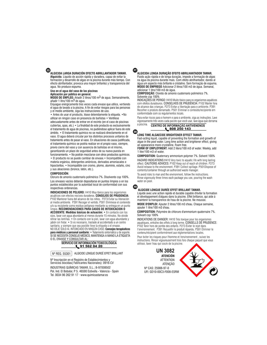 Líquido de acción rápida y duradera, capaz de evitar la formación y desarrollo de algas en la piscina durante más tiempo. "utilice los biocidas de forma segura, lea siempre la etiqueta y la información sobre el biocida antes de usarlo"