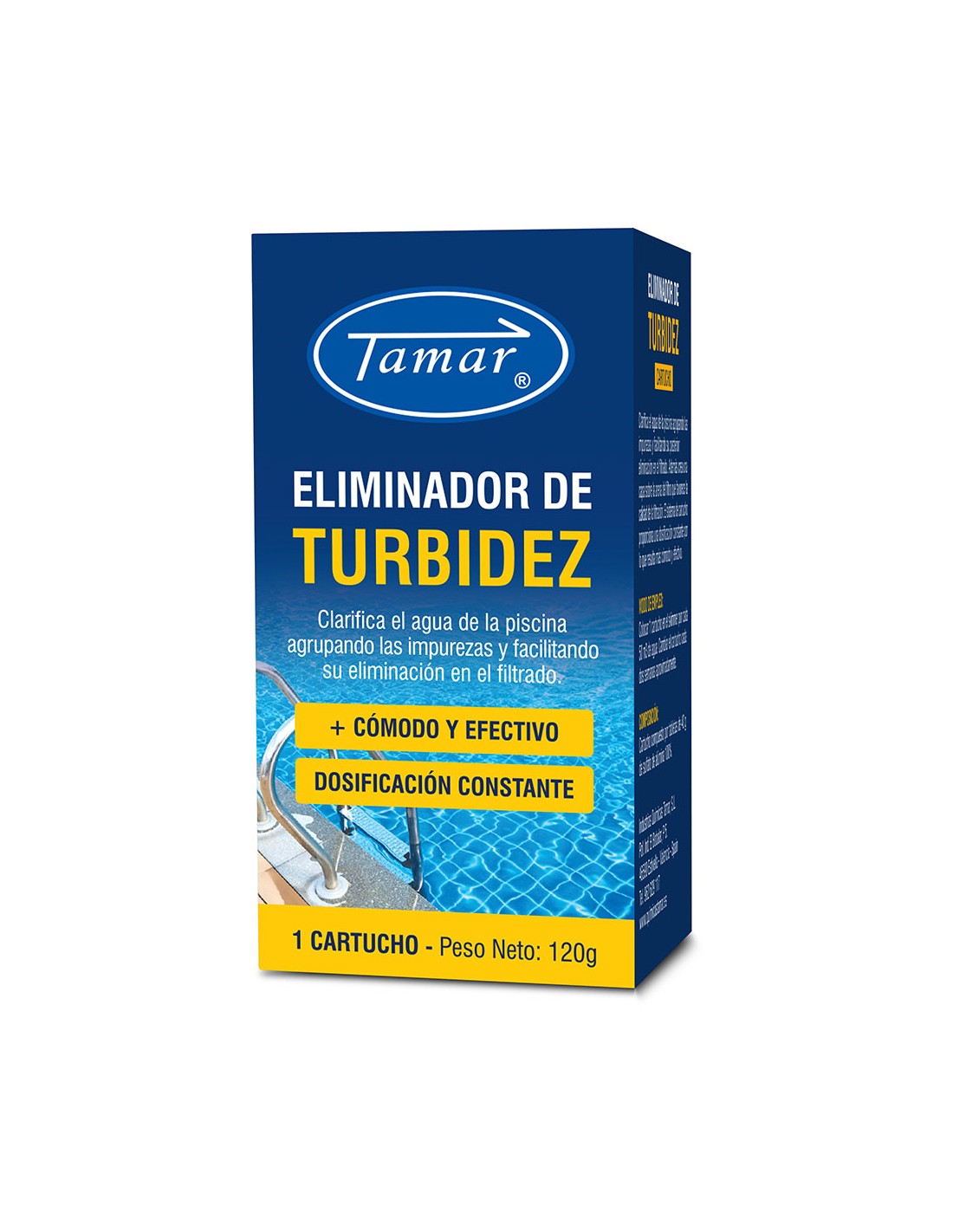 Eliminador de turbidez cartucho 1125220001 tamar. floculante para piscinas. formato en cartucho individual de 120g. permite liberar sustancia activa floculante de forma progresiva y gradual a la piscina permitiendo limpiar y recoger la suciedad en suspensión.