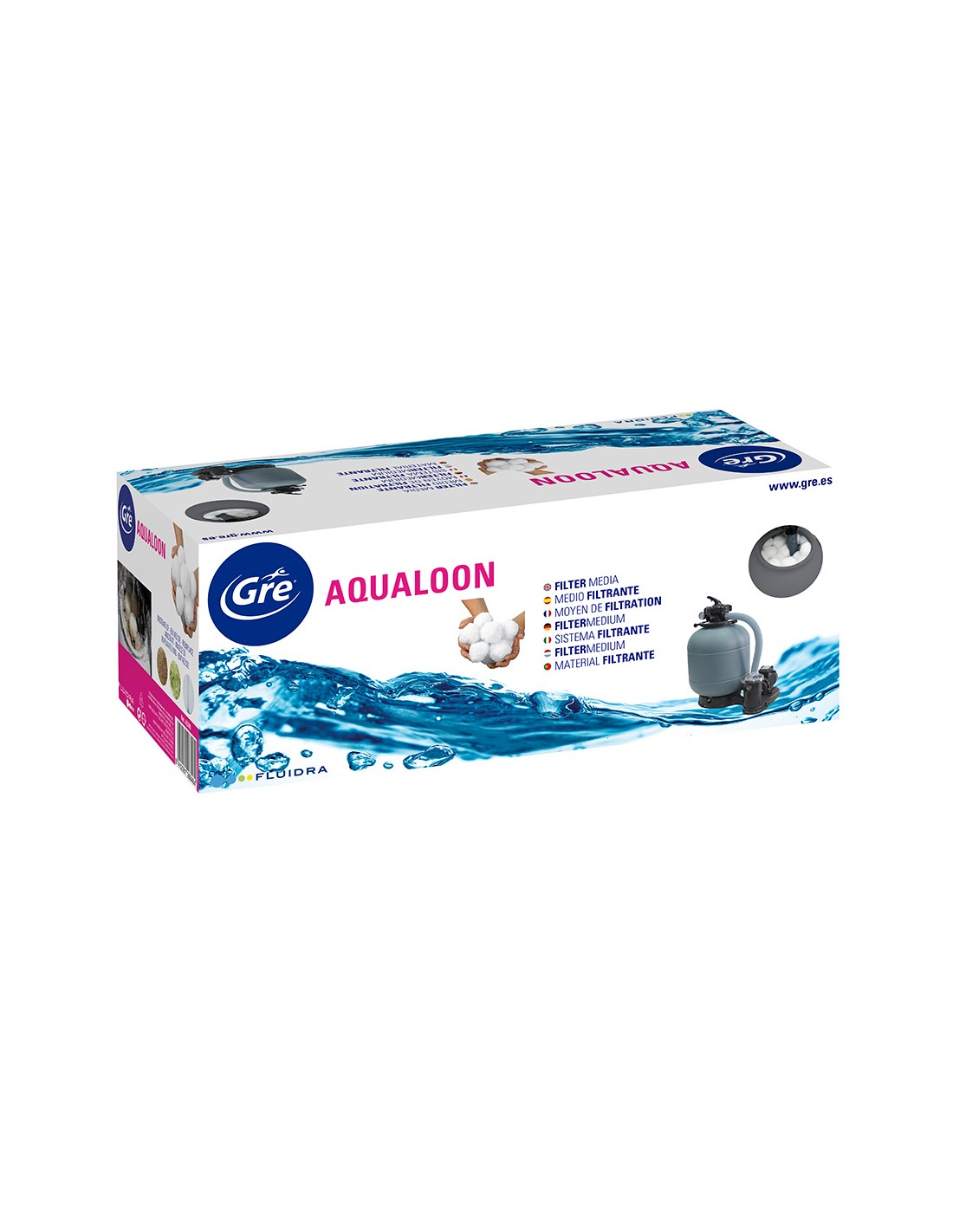 Material: polietileno 100% reciclable. producto innovador y revolucionario. bolas de polietileno que filtran los residuos. alternativa a la arena vidrio o cartuchos. 700g de aqualoon equivalen a 25kg de arena. filtra impurezas hasta 3 micras lo que hace una mayor eficiencia de filtración. requiere menor frecuencia de lavado por lo que lleva a un ahorro de energía. peso ligero. alarga la vida de los filtros ya que se trabaja con menos presión. se puede lavar en la lavadora cuando tenga demasiada suciedad en la bola. permite una excelente filtración. color: blanco
