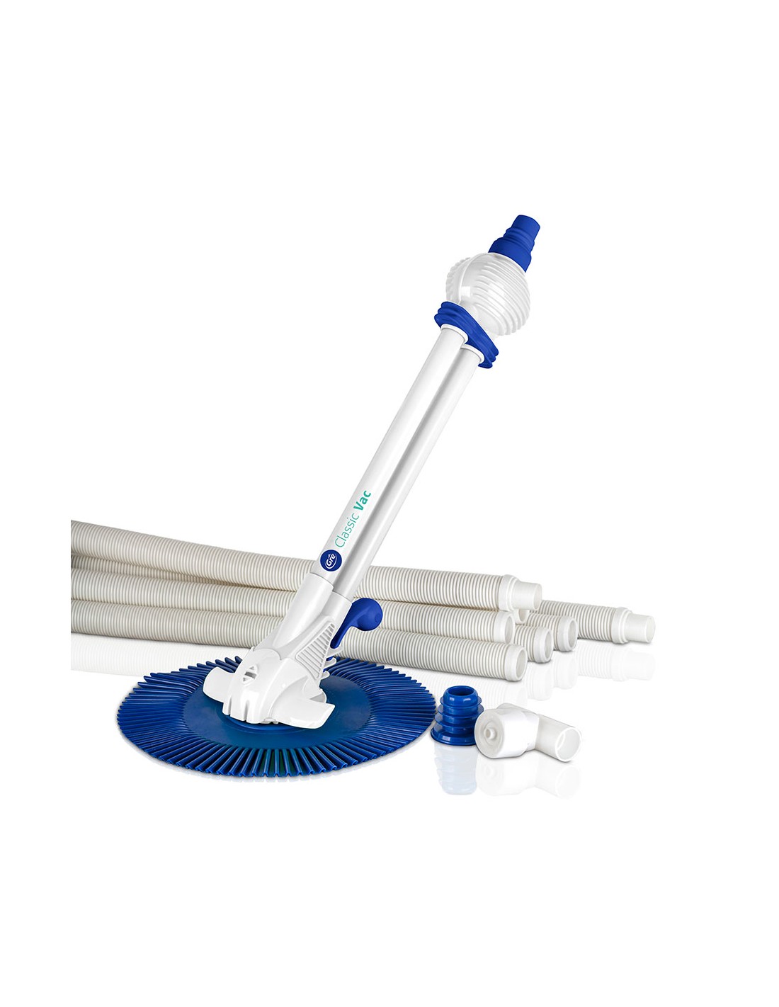 Para la limpieza de piscinas con fondo plano o ligeramente inclinado. apto para piscinas enterradas y elevadas equipadas con una filtración de una potencia mínima de 3/4cv. tiene una fácil instalación ya que se conecta directamente a la toma de aspiración o al skimmer. funcionamiento 100% hidráulico. gracias a este sistema aprovecha la potencia de succión de la depuradora para moverse de forma aleatoria por el fondo de la piscina. incluye manguera de 8m (en 8 tramos de 1m cada uno) con conexión ø38 adaptador y regulador de caudal. sistema de martillo.