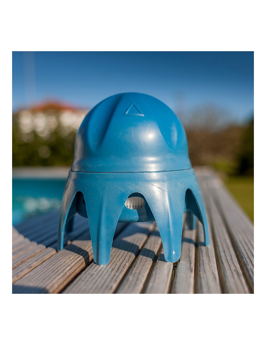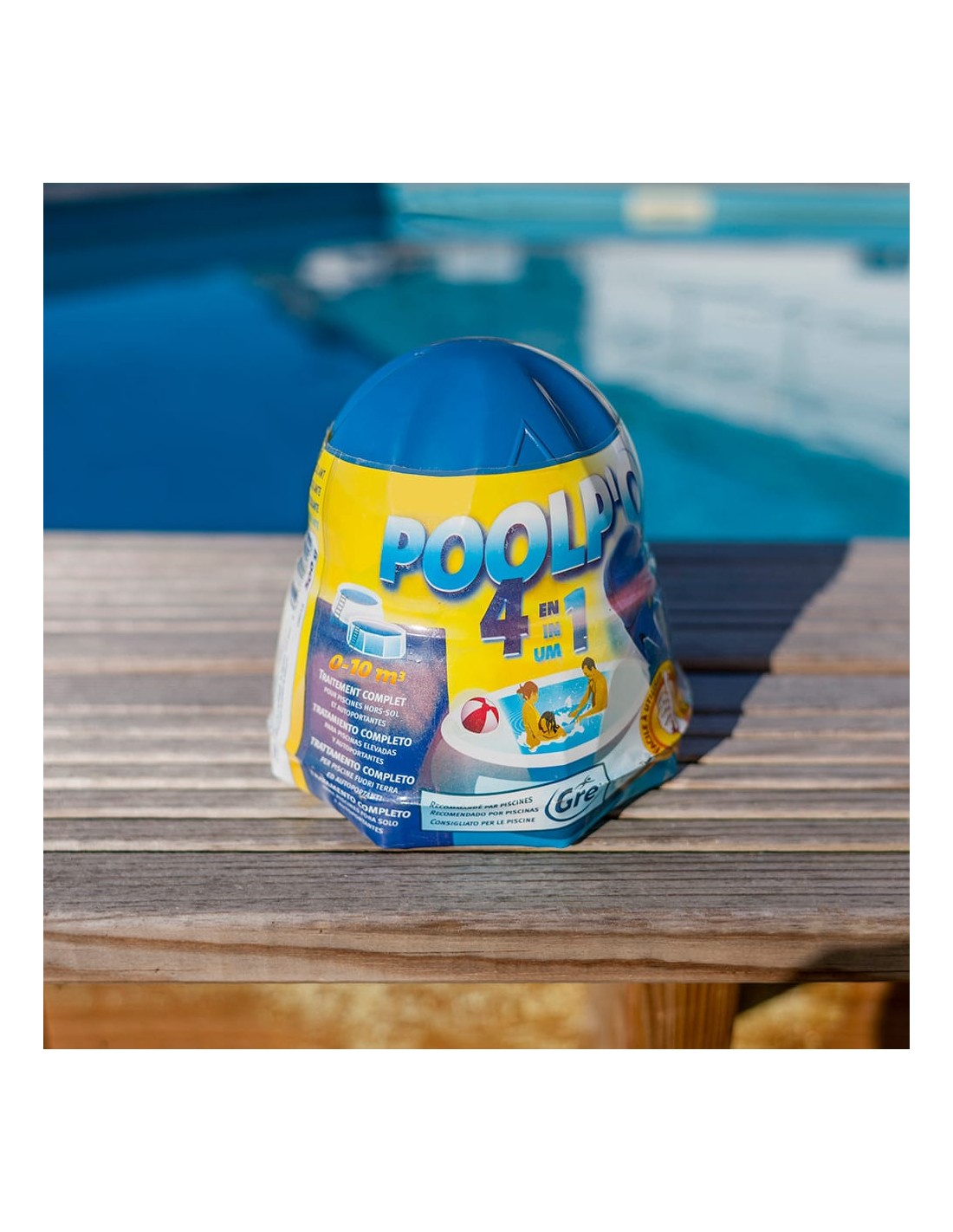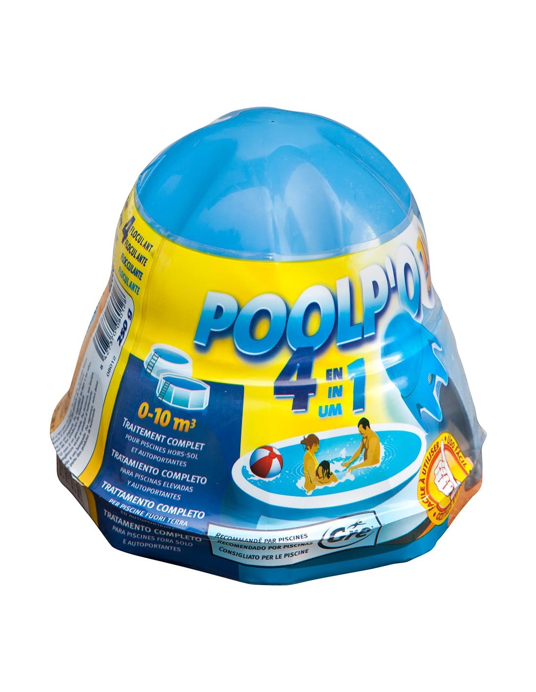Dosificador flotante para el mantenimiento del agua de la piscina (poolp'o). apto para piscinas elevadas con o sin filtración. se requiere un tratamiento mensual. 4 acciones: higienizante, antibacterias, antialgas y floculante. no hay manipulación directa con el producto químico. se consigue un mantenimiento del agua de manera segura. facilidad de uso: girar la rosca que se encuentra abajo y colocarlo sobre el agua de la piscina. no perjudica la filtración gracias a su forma optimizada que deja el circuito de agua intacto. sube a la superficie una vez acabado el producto químico avisando de la necesidad de empezar un nuevo tratamiento. de 0-10 m contiene 250 g