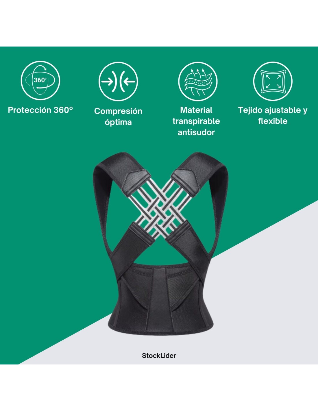 Fuerza transversal ajustable individualmente: las dos correas de tejido del corrector de espalda se adaptan inteligentemente al centro ligeramente deformable de la columna vertebral y proporcionan una distribución de fuerza científicamente diseñada.