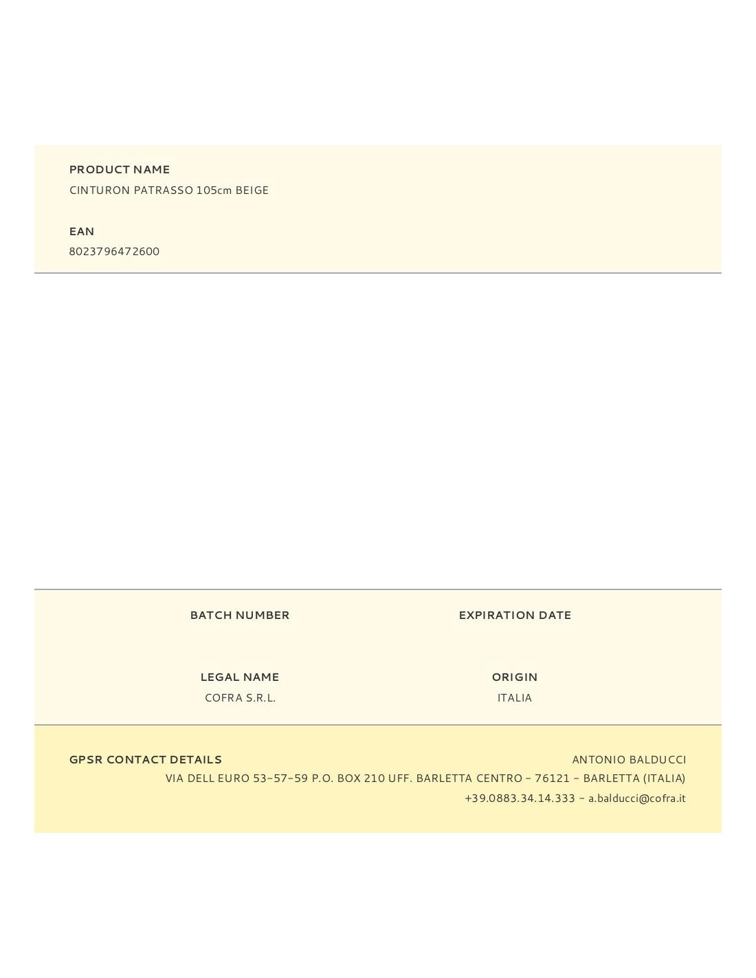 Cinturon patrasso 105cm beige. 100% poliester. uso en construccion, industria y logistica. reversible. para hombre y mujer.