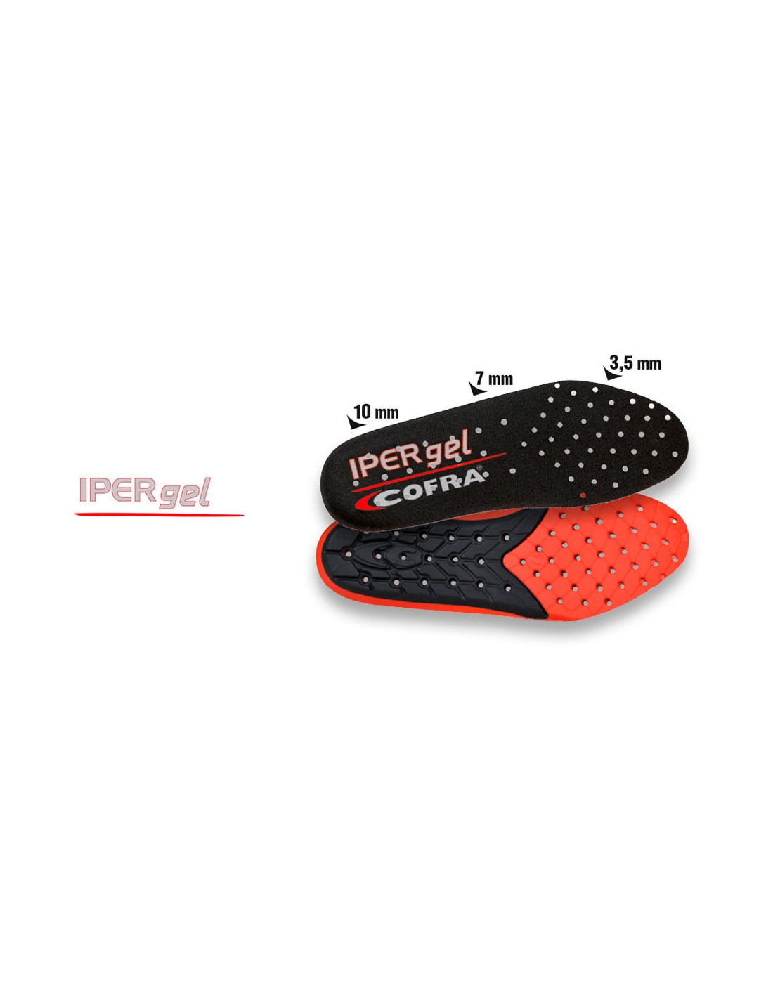 Plantilla iper gel talla 38. plantilla anatomica, perforada, antiestatica y preformada. confort ergonomico y alta transpirabilidad. ideal para los que trabajan de pie durante muchas horas por dia. los canales que se encuentran en la superficie inferior de la plantilla favorecen la circulacion de aire en el interior del calzado. antibacteriano. absorbe el sudor y deja el pie seco.