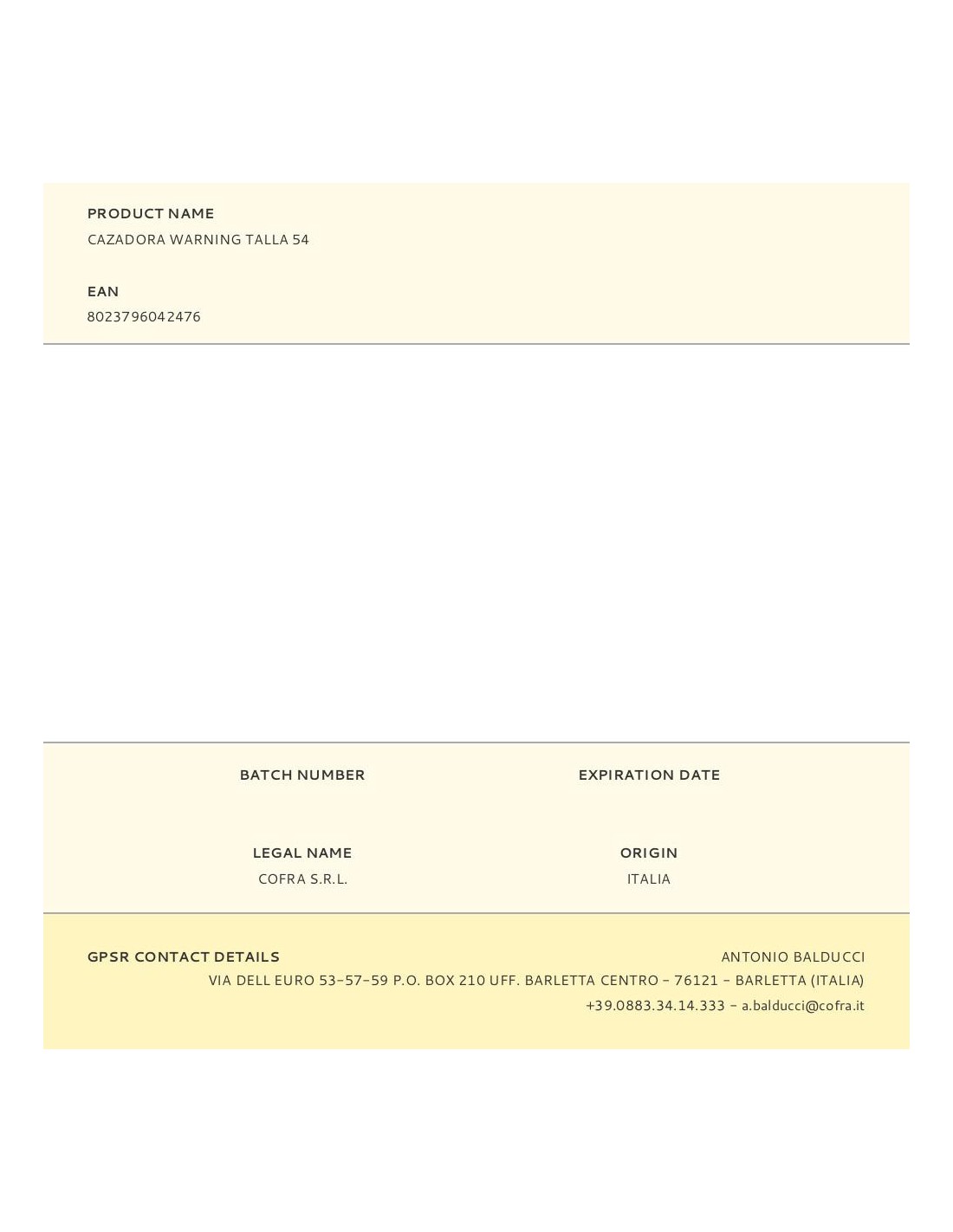 Cazadora warning talla 54 amplios bolsillos delanteros, bandas en insertos reflectantes 3m y scotchlite. incluye bolsillo para telefono movil con tejido aislante e-ward, bolsillos en el pecho, cintura y puños ajustables, corte ergonomico de las mangas, doble bolsillo interior, pasador auricular. composicion: 60% poliester 40% algodon. gramaje 290g/m color amarillo. ideal para agricultura, ferrocarril, industria logística, trabajos de carreteria....