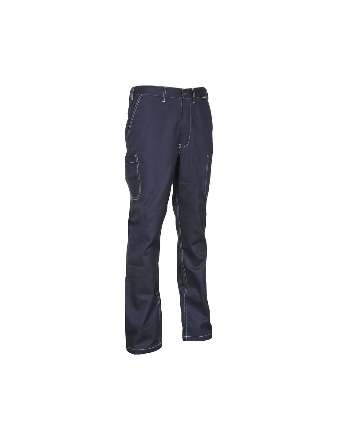 Pantalon lesotho azul marino talla 48. 2 bolsillos laterales cerrados con botones, amplios bolsillos delanteros, bolsillo trasero con cierre con boton, cintura elastica, pantalon con abertura central cierre de botones. composicion 100% algodon. gramaje 270g/m