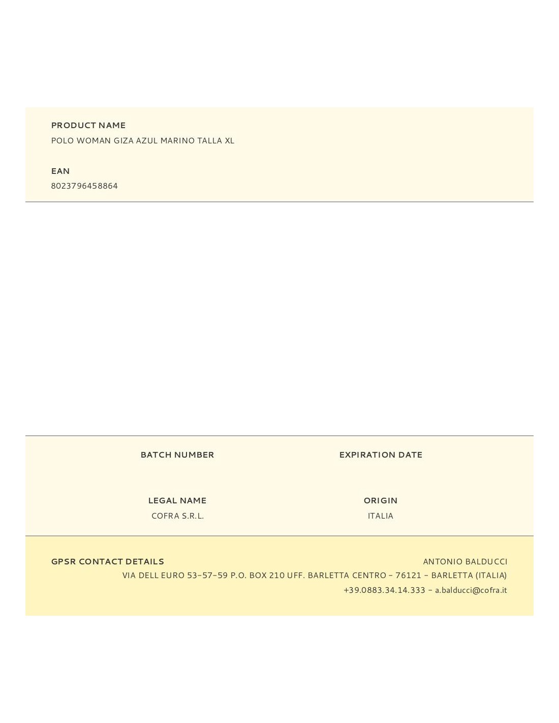 Polo woman giza azul marino talla xl cuello de algodon grueso, composicion 100% algodon piquet, gramaje 180g/m