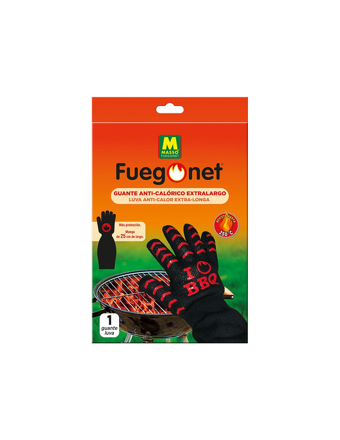 Guante anti-calórico extra largo fuegonet . guante de excelente calidad que ofrece protección térmica hasta 250°c. de poliamida sintética. resulta adecuado para mano derecha e izquierda y proporciona un excelente agarre. talla única. cómodo, flexible y duradero.