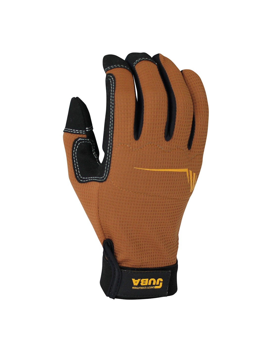 Guante trabajo piel sinética / spandex mecanix,, táctil, t-08 cierre con cinta ajustable dedos pulgar, corazón e índice táctiles para el uso de pantallas acolchado foam en nudillos para mayor protección de golpes cómodo y transpirable. refuerzos de pvc en la palma