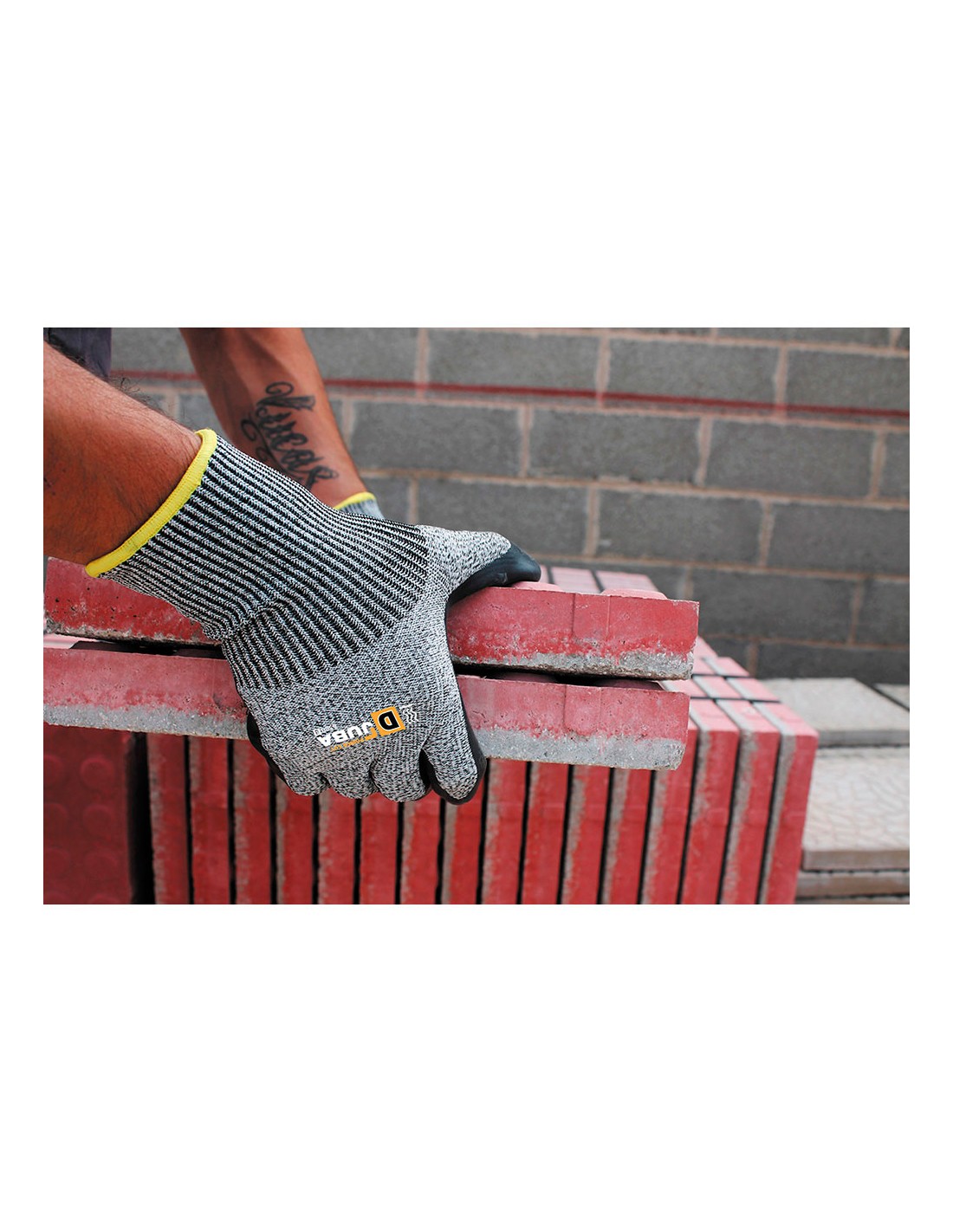 Guante trabajo resistente a corte fibra k-rock / eco - latex t-09. aporta tacto, ligereza, flexibilidad y confort. excelente agarre en situaciones secas y húmedas gracias a su diseño en palma de microventosas. recubrimiento de látex ecológico ya que no se utilizan aditivos ni productos químicos en su proceso de fabricación. resistencia a la abrasión, mayor durabilidad. usos: manipulaciones de objetos con riesgo de corte medio/alto, tanto en medio seco como en superficies húmedas o mojadas, trabajos de construcción, canteras, manipulación de productos cerámicos, pizarra. instalaciones de fontanería