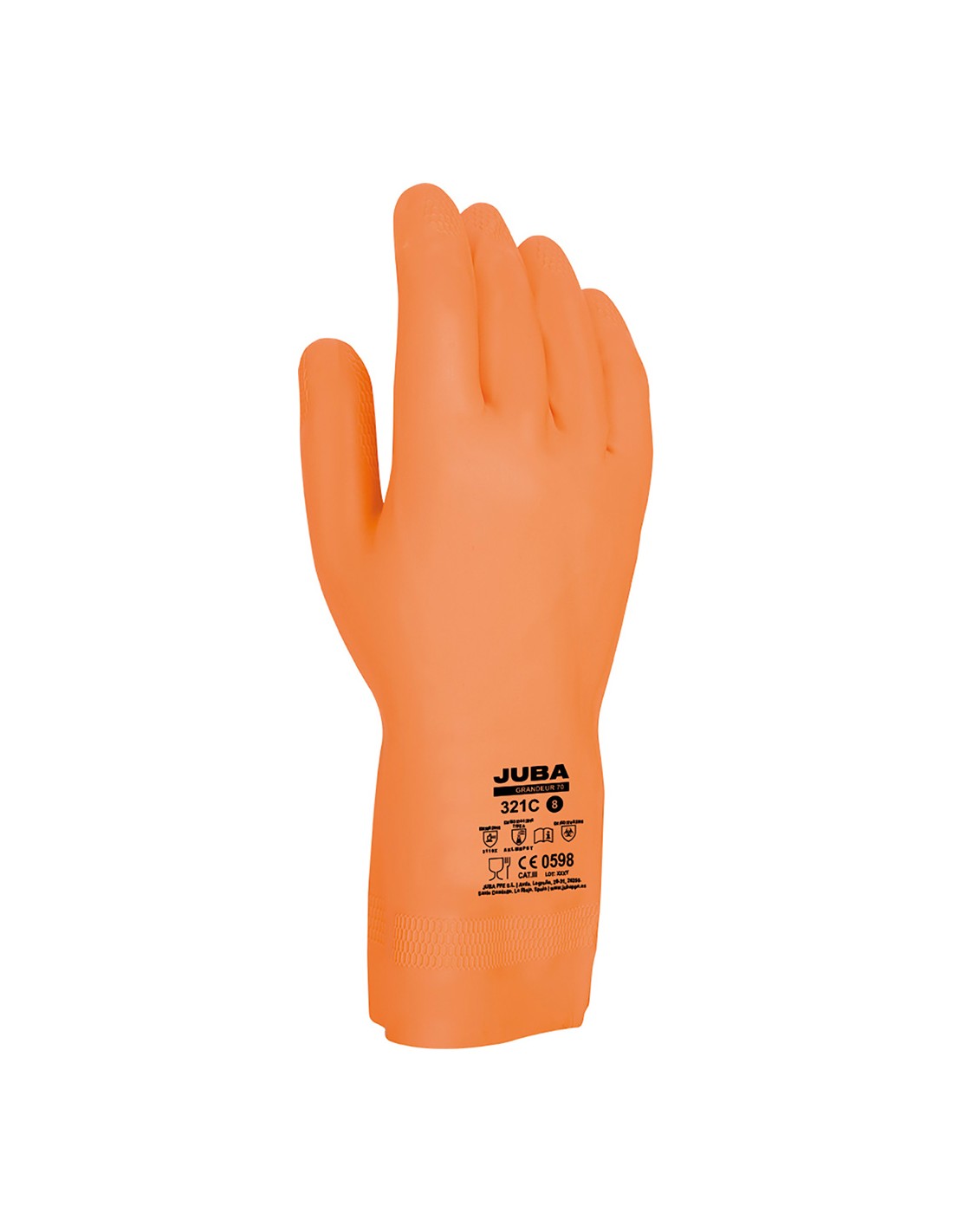 Guante de trabajo grandeur 70, naranja, t-09, de látex neopreno mezclado. flocado interior algodón aditivos bacteriostáticos y fungicidas patrón antideslizante con acabado panel de abejaabeja. usos industria química, mantenimiento e industria pesada, industria cárnica y pesquera, agricultura, construcción, recogida de basuras, lavandería industrial y limpieza