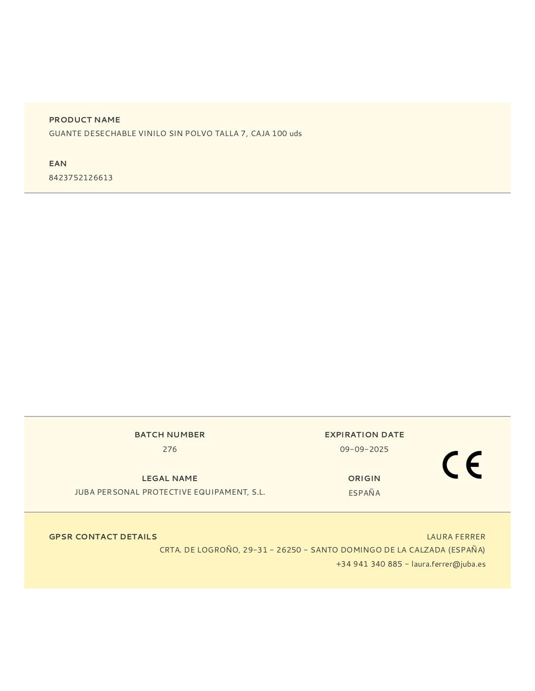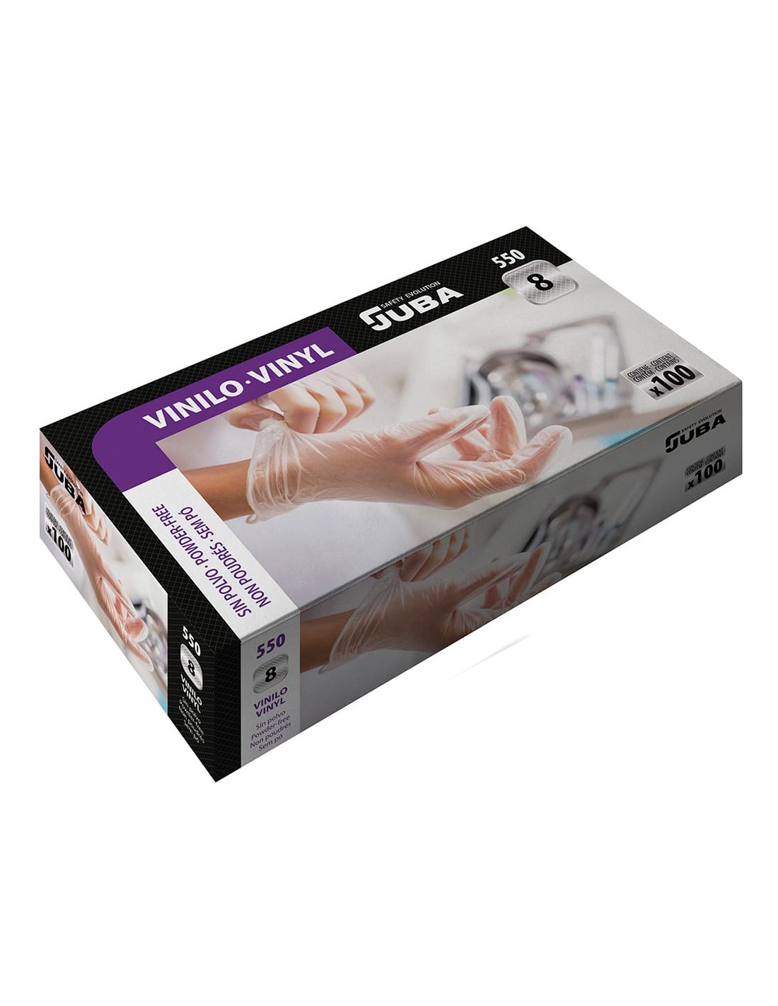 Caja 100 guante desechables vinilo sin polvo, color natural, t-07. geriátricos y centros de día. manipulación de acrílico, porcelana o materiales preciosos. inspección y limpieza. peluquería. sanidad, personal médico. industria alimentaria. lácteos con ph mayor de 4,5