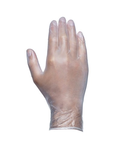 Caja 100 guante desechables vinilo sin polvo, color natural, t-08. geriátricos y centros de día. manipulación de acrílico, porcelana o materiales preciosos. inspección y limpieza. peluquería. sanidad, personal médico. industria alimentaria. lácteos con ph mayor de 4,5