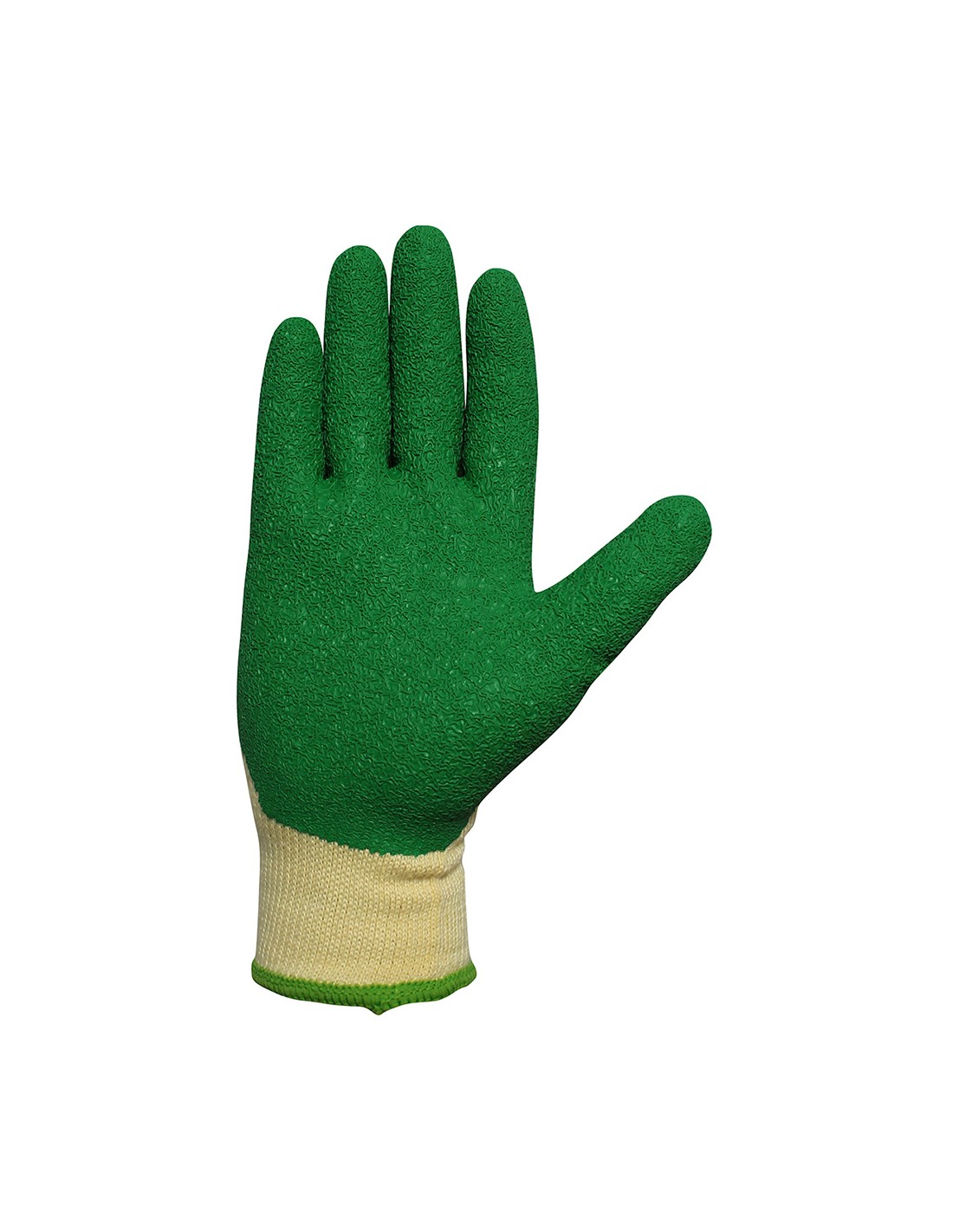 Guante poliéster recubierto latex hasta medio dorso, color verde. trabajos de rosales, malezas, poda de espinos. t-10