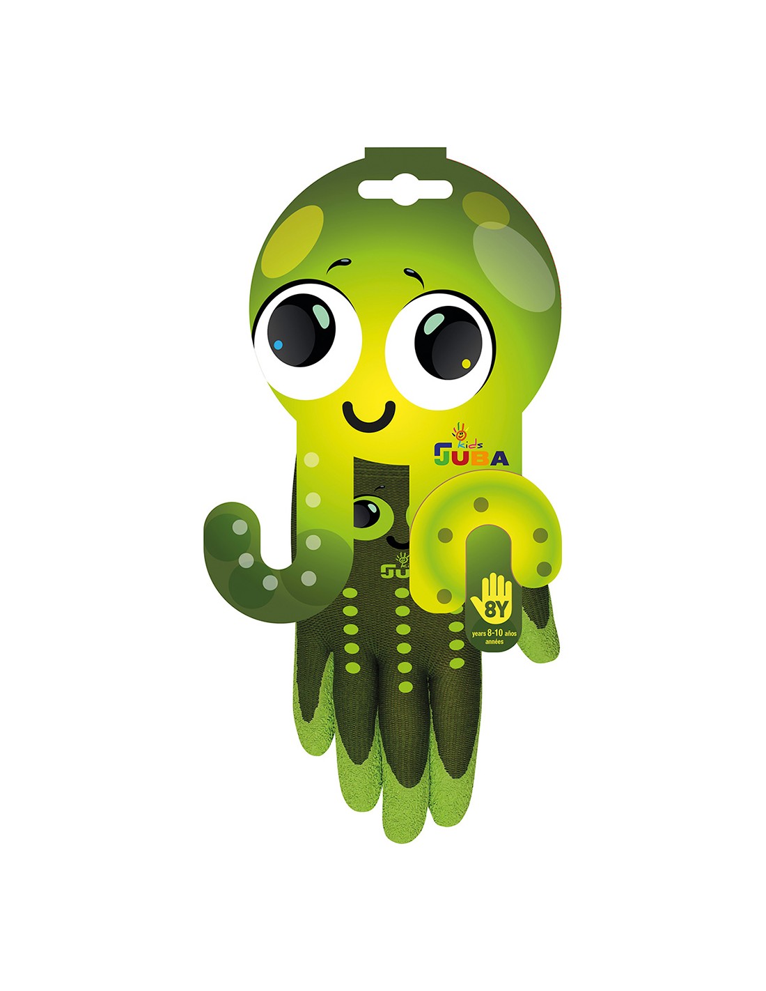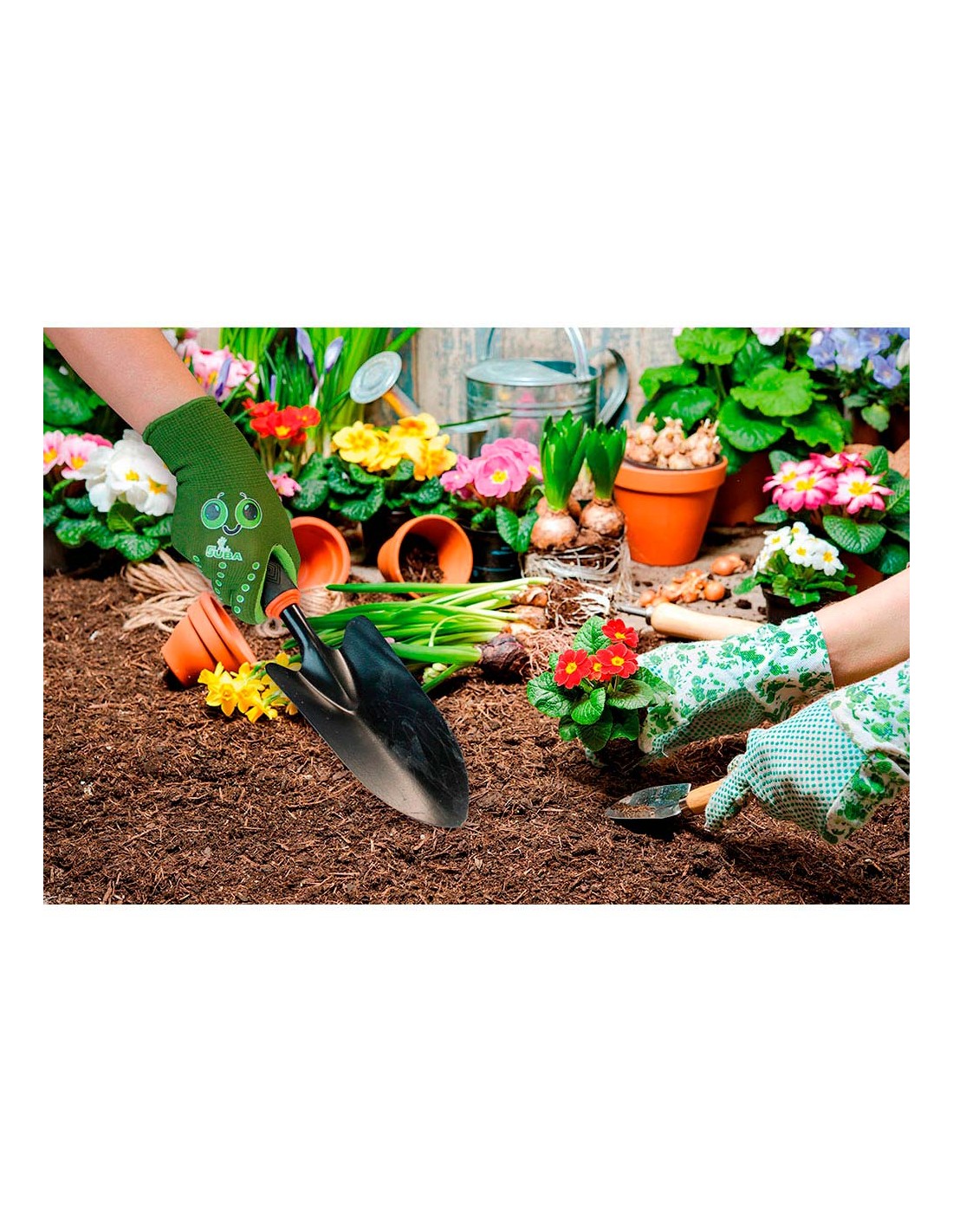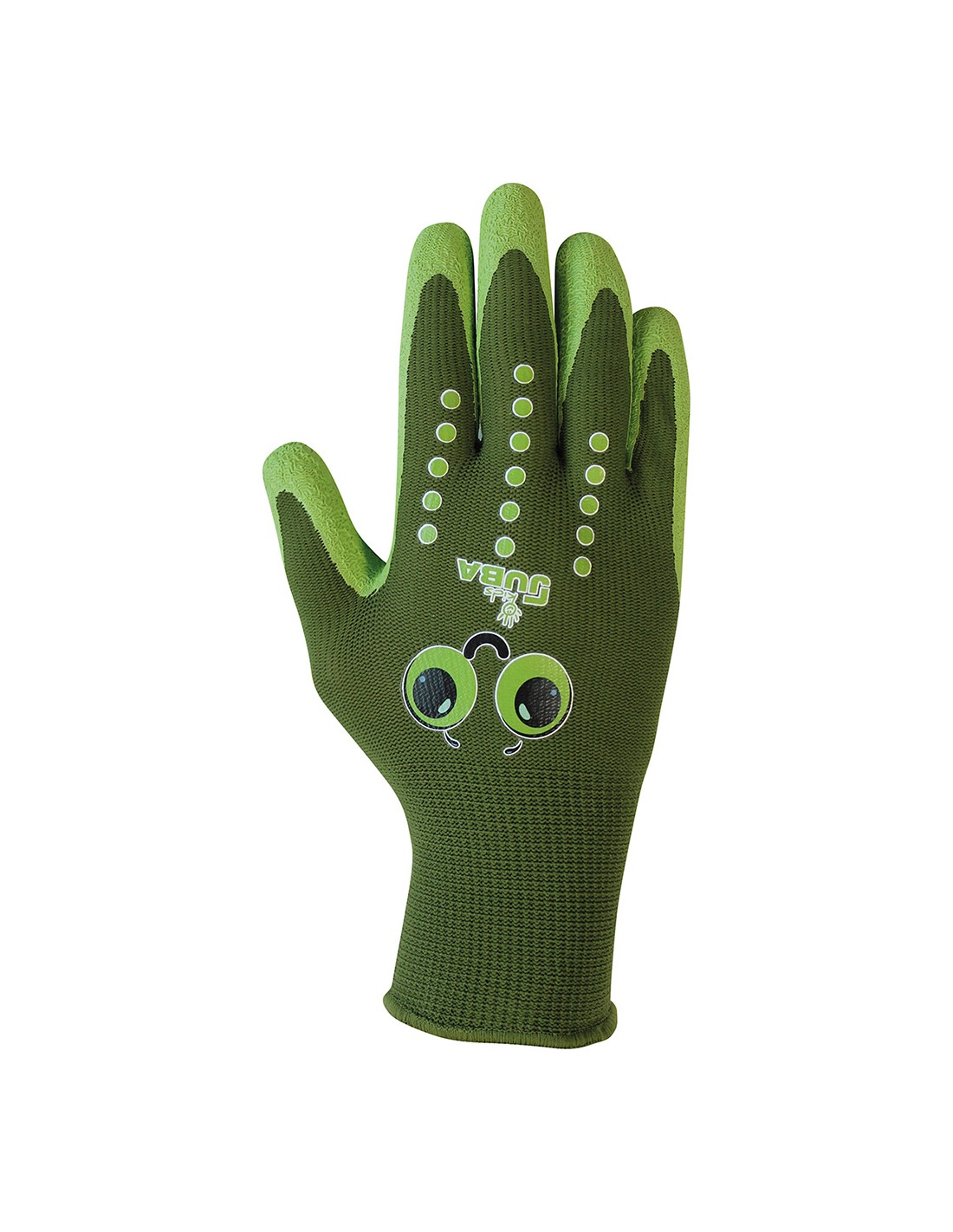 Guante infantil jardinería verde t-08 años. sin costuras con recubrimiento de látex rugoso en palma. color verde. colaborar en el cuidado del jardín y huerto con los adultos. diversión en la naturaleza