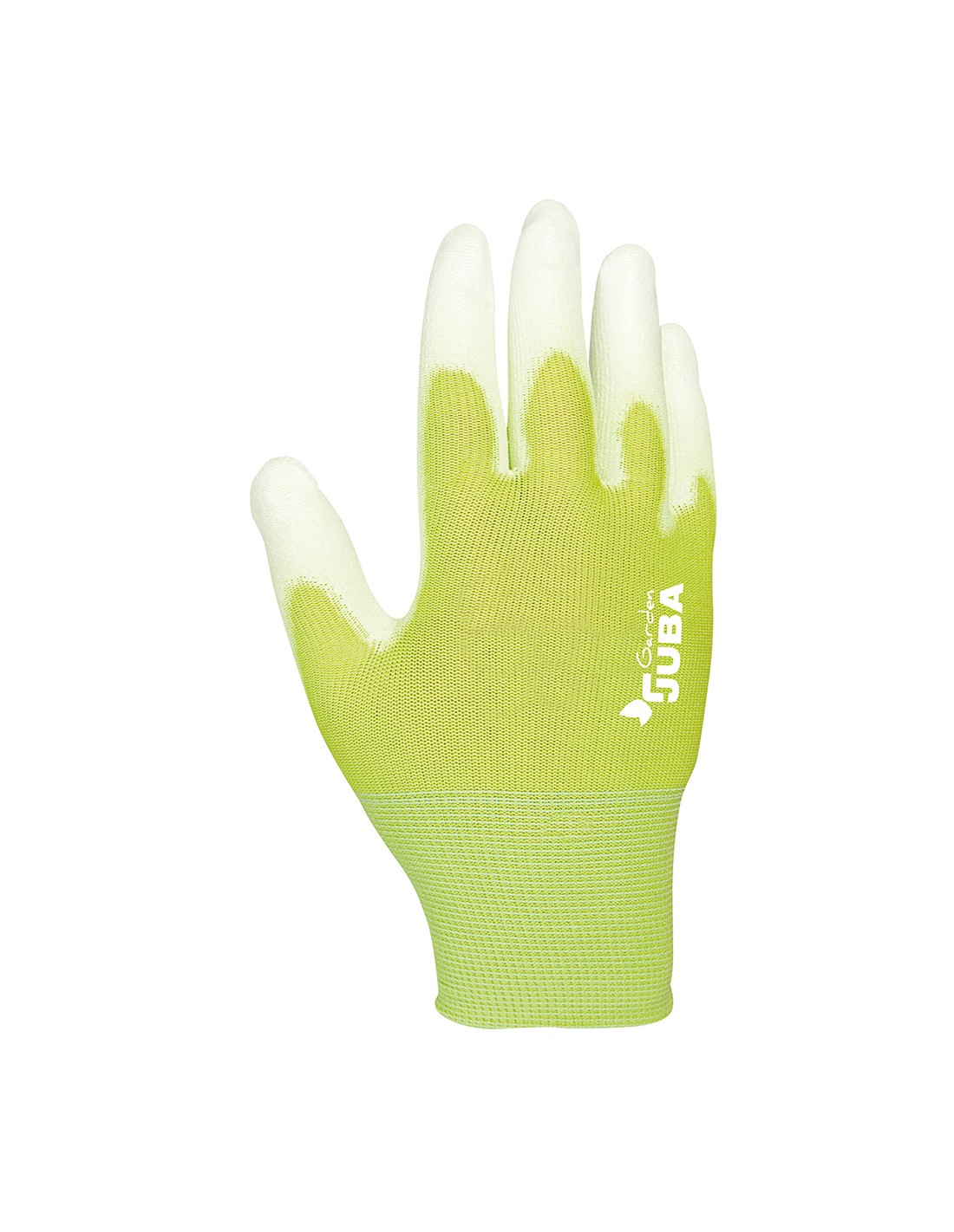 Guante nailon verde con palma recubierta de pu blanco. colocación de césped artificial. trabajos de bricolaje que requieran precisión y tacto. t-09