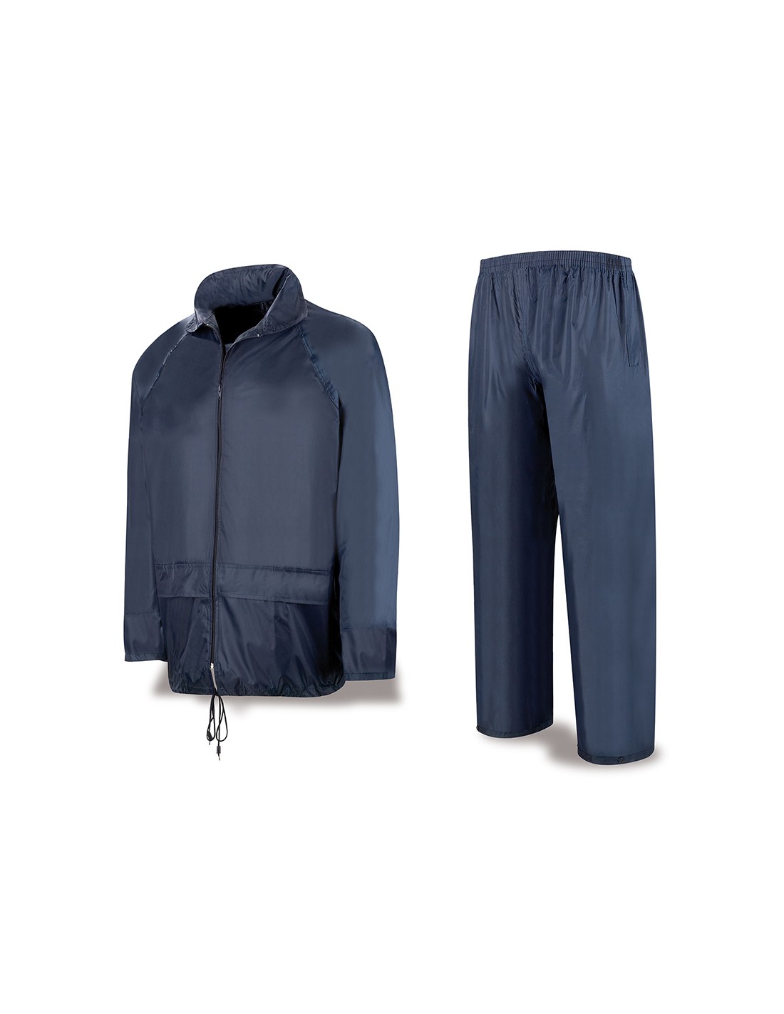 Traje agua ingeniero poliéster/pvc azul: xxxl. traje de agua de 0,32mm de grosor, compuesto por chaqueta con capucha y pantalon. costuras termoselladas, certificado segun norma en343 de proteccion contra la lluvia. material: lámina exterior 100 % poliéster 150t / lámina interior 100 % pvc termoadherido