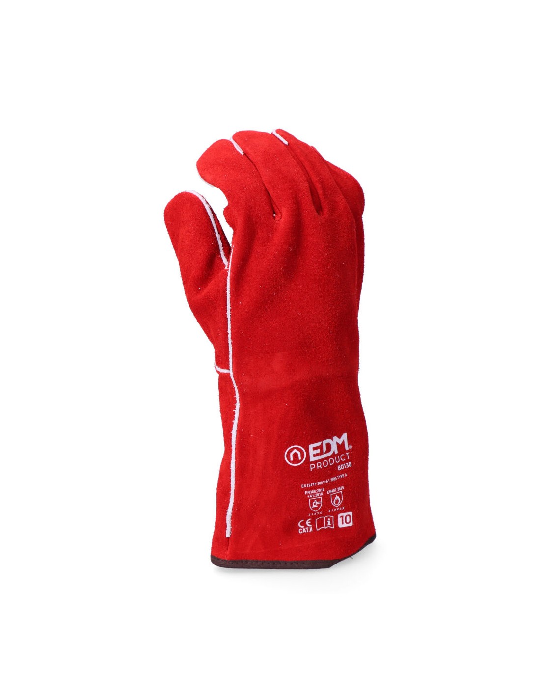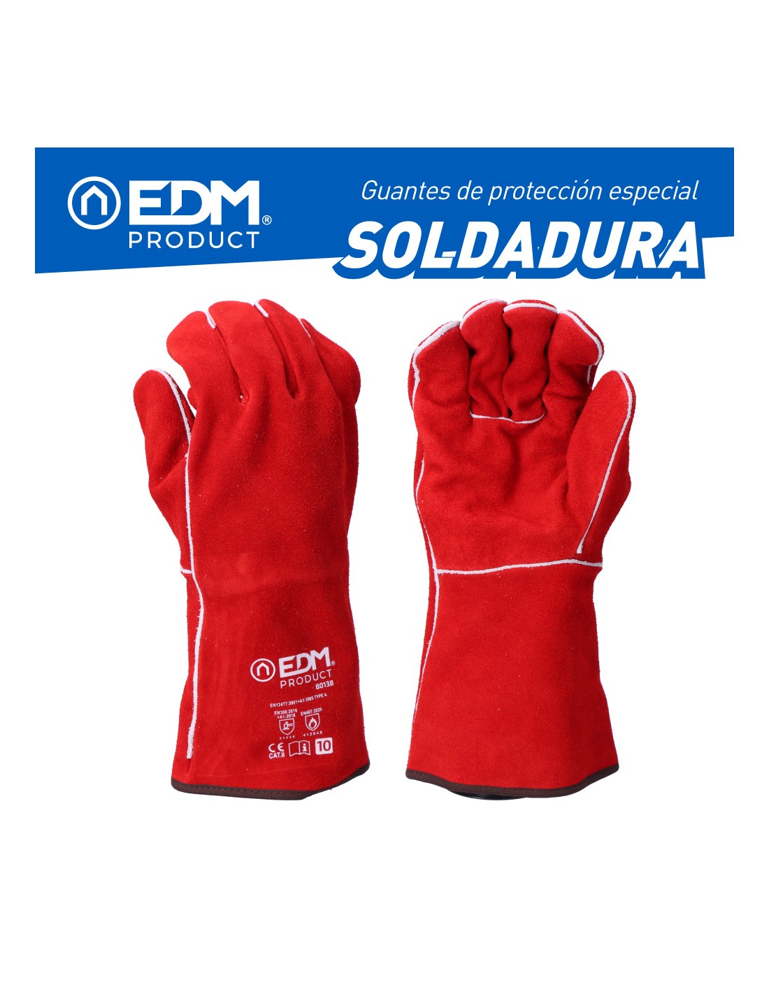Guante para soldadores piel serraje cosido hilo para-aramida t-10. indicado para trabajos de soldadura poco agresivos. piel de calidad extra. resistente al calor por contacto (100°c durante 15 segundos). excelente comportamiento a la llama y a las pequeñas salpicaduras. muy confortable gracias a su forro interior de algodón en palma y dorso. cosido con hilo de kevlar, para mayor durabilidad. costuras protegidas. cumple con la norma en12477:2001+a1:2005 de guante de protección para soldadores de tipo a