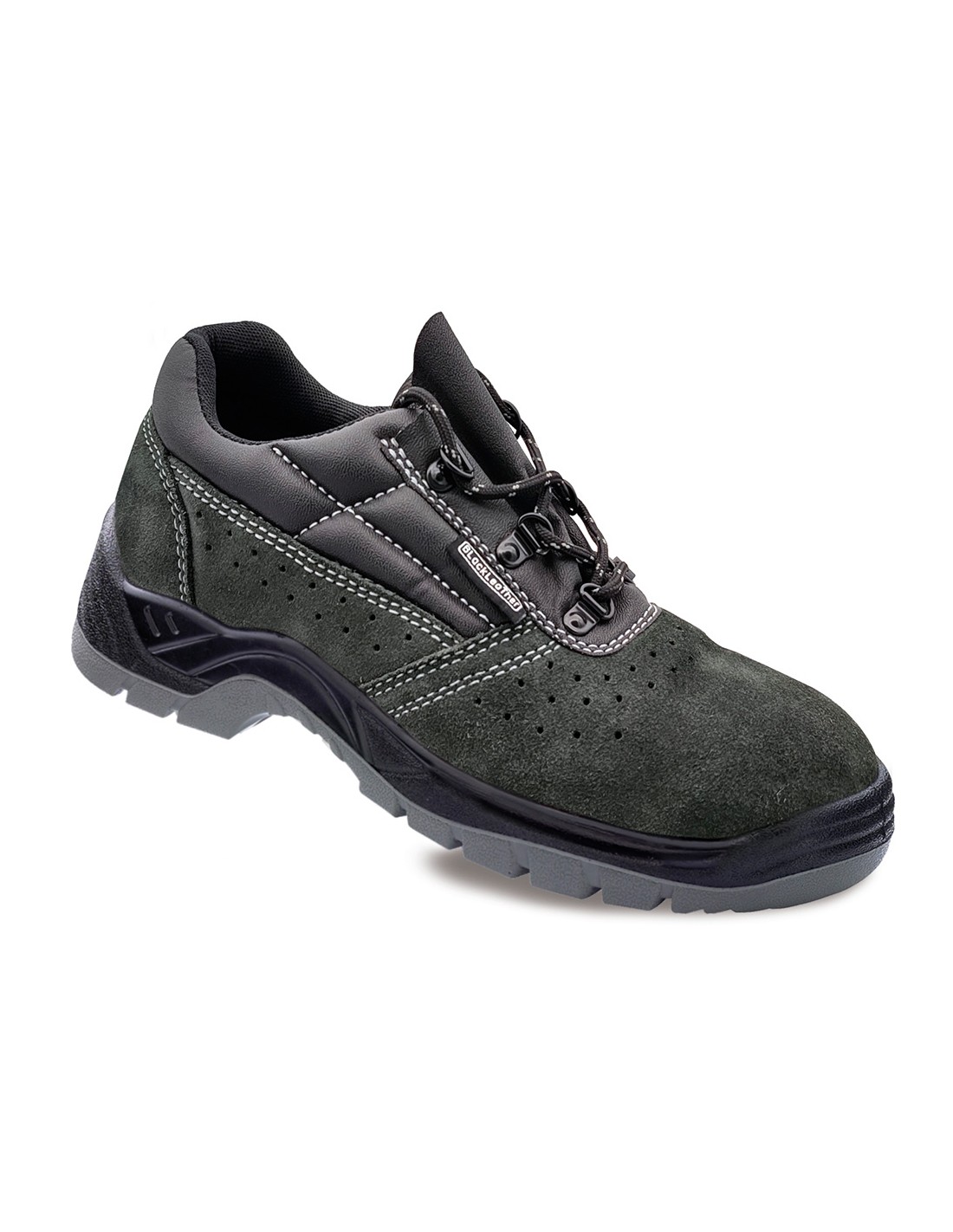 Zapatos de seguridad piel serraje perforada gris oscuro s1p src talla 42 blackleather. zapato piel negra con maximo nivel antideslizamiento src. suela doble densidad. puntera metálica