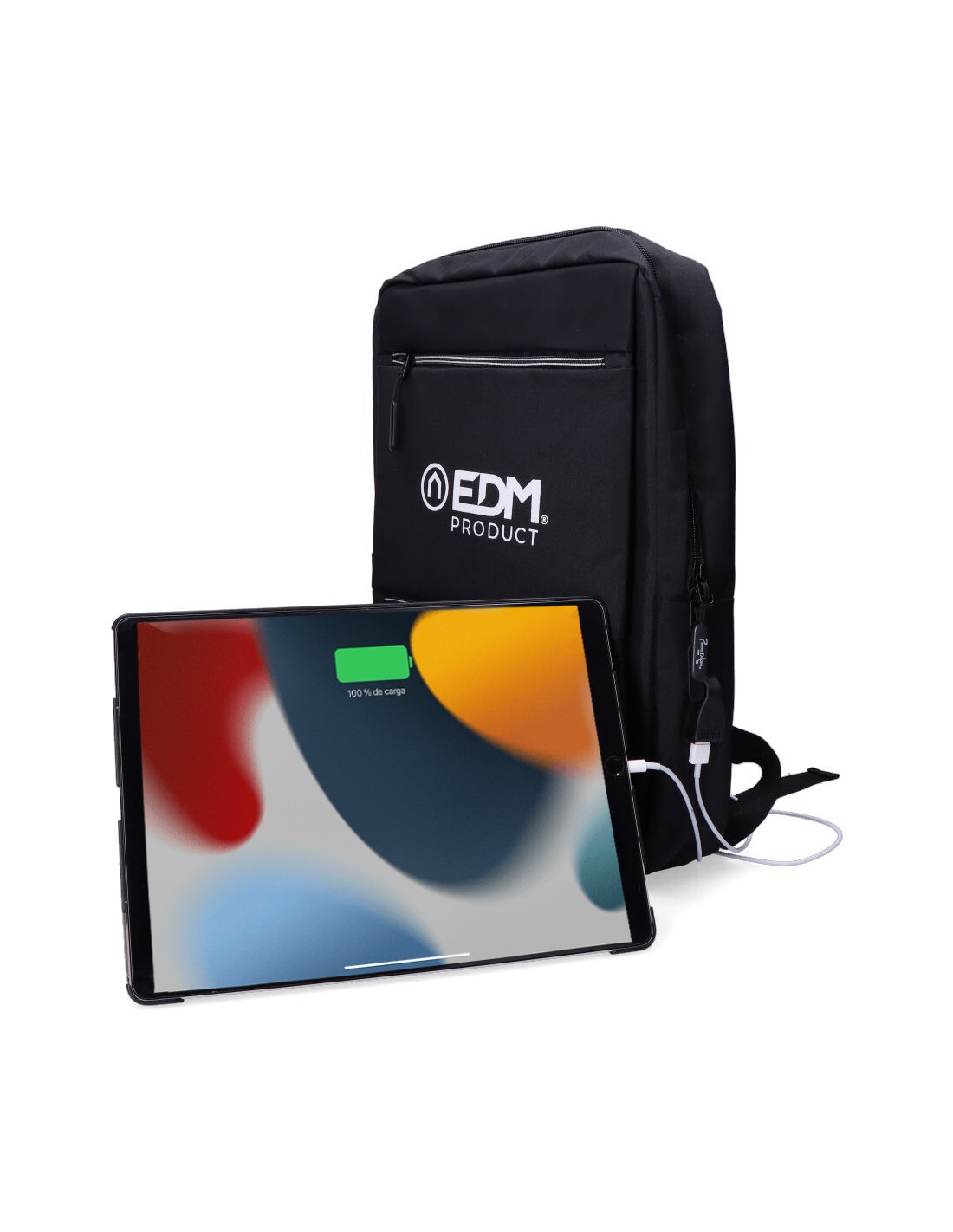 Mochila de oficina negra pierre delone. medidas: 32x42x12cm (alto/ancho/profundo). 100% poliéster. interior acolchado para portatil. portabotellas. conexión usb para power bank (no incluida). sujeción elástica para llevar en un trolley. tirantes acolchados.