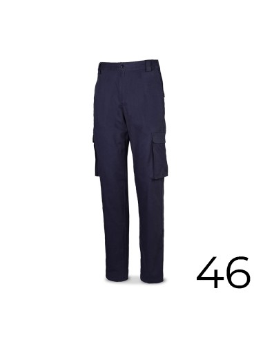 Pantalón strech 98% algodon 2% elastano 240g. azul marino talla 46 588pbsam/46 pantalon strech 98% algodon 2% elastano. fabricado con tejido de 240g. bolsillos en pernera tipo cargo con fuelle, 2 bolsillos a la cadera tipo frances y 2 bolsillos traseros. color azul marino. talla 46