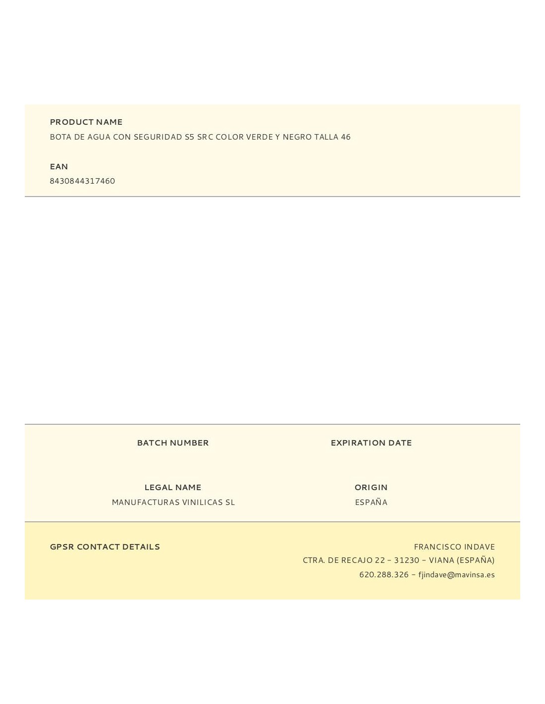 Bota de seguridad categoria s5 talla 46, fabricada en pvc según norma en iso-20345, puntera y plantilla metálicas, suela con resistencia a hidrocarburos, absorción de energia en el talón, antiestática, coeficiente de antideslizamiento src (sra+srb), acabado superficial pulidolo cual facilita su limpieza y da una superior resistencia a la rotura, hecha en material de primer uso sin cargas minerales lo cual le otorga una mayor flexibilidad incluso a bajas temperaturas y una mayor resistencia a acidos y álcalis ligeros.