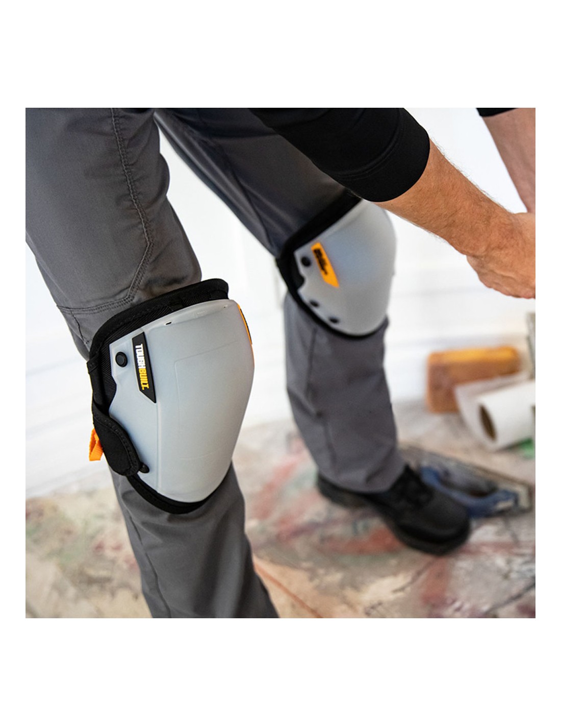 Rodilleras gelfit non-marring tb-kp-g203 diseño cómodo con gel y espuma gelfit forma ergonómica que envuelve la rodilla y la parte superior de la espinilla las carcasas snapshell se pueden desenganchar fácilmente y son intercambiables entre sí, lo que hace que esta sea la rodillera perfecta para todos los trabajos 2 en 1: use las rodilleras con o sin carcasas snapshell maximiza la distribución de la presión para mantener la comodidad durante todo el día la altura de los paneles laterales reduce en gran medida la torsión de la rodilla tiras elásticas de goma eva que se mantienen en su lugar y proporcionan comodidad sin cortar la circulación tejido de 1680 denier resistente a la abrasión recomendadas para: superficies duras, rugosas e irregulares resistencia a la penetración: nivel 2