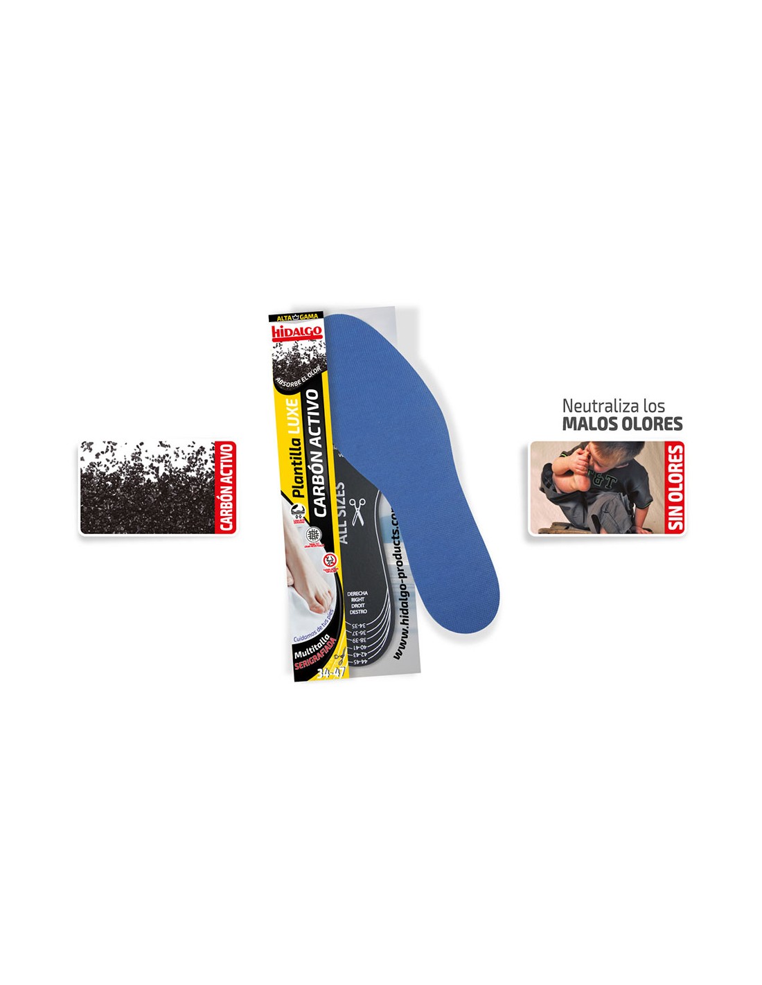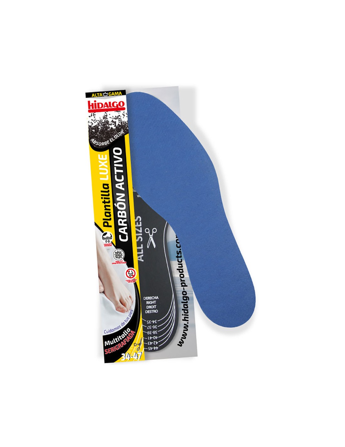 Plantilla para calzado luxe carbón activo recortable. neutraliza los malos olores. multitalla recortable, 34-47