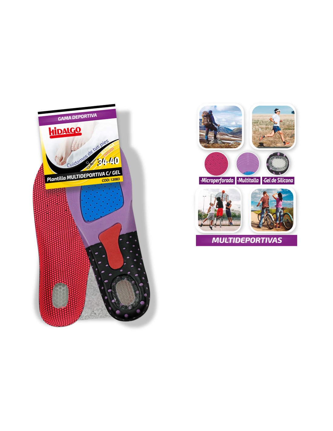 Plantilla para calzado multideportiva gel t: 34-40. microperforada.gel de silicona. transpirables. absorbe el sudor, amortiguación, confort y estabilidad. multitalla recortable, 34-40