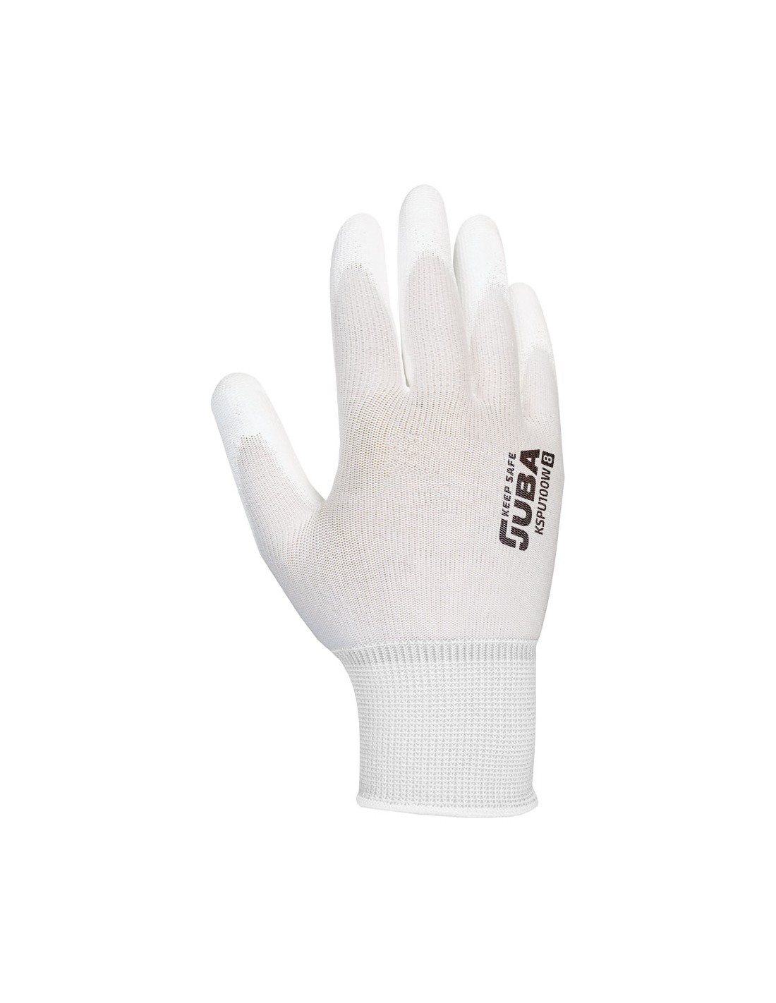 Guante poliéster con palma poliuretano, keep safe, blanco, t-06 para bricolaje, almacenamiento y reposición, manipulación, pintores y escayolistas, montaje y ensamblaje de piezas en entornos secos, ligeramente húmedos o engrasados, estampación